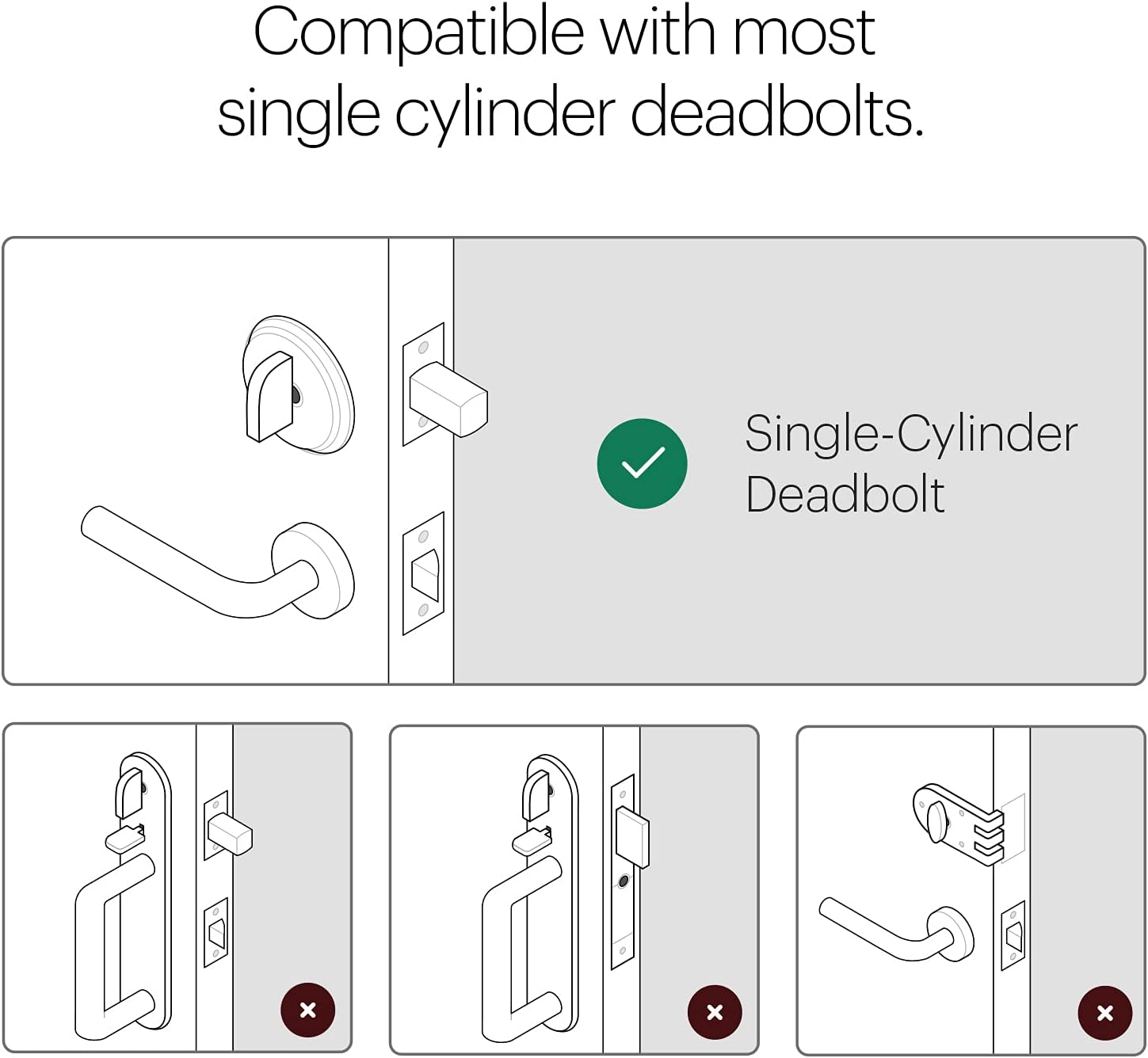 Update your existing bolt: August's smart locks are adjusted inside your door, which makes your dead lock smarter, safer and much more convenient. Keep your keys in the case (but you won't need them). Note: Measure your door setback, cross hole and thickness to make sure you find the correct adjustment. The correct adjustment. Control Method: Voice
