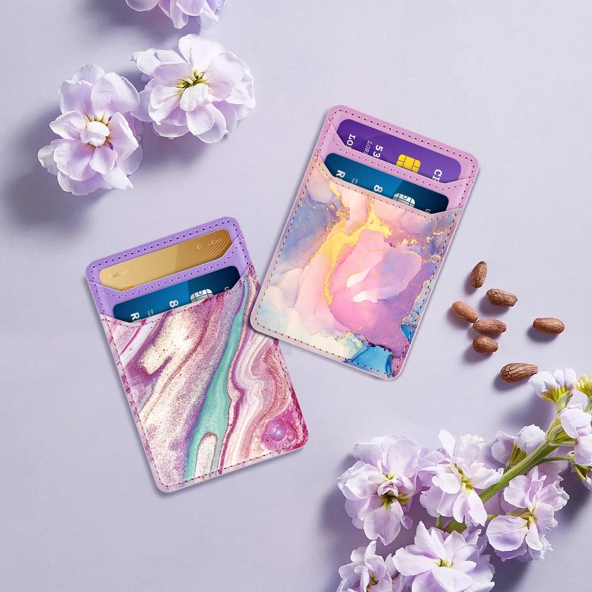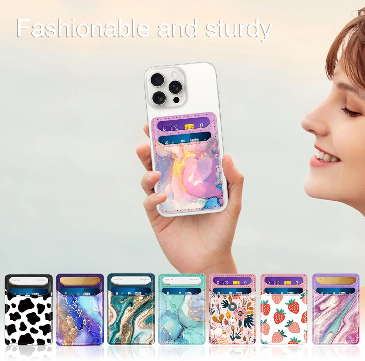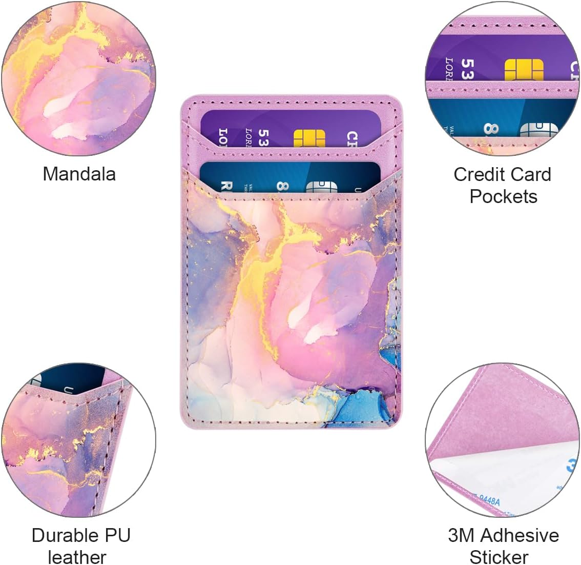 Auto adhesive phone wallet: 3M Stong adhesive tape, it gives you a strong, firm and lasting winery. It will not fall easily. Integrated RFID block material layers to reduce the credit risk information, the stolen identification card.