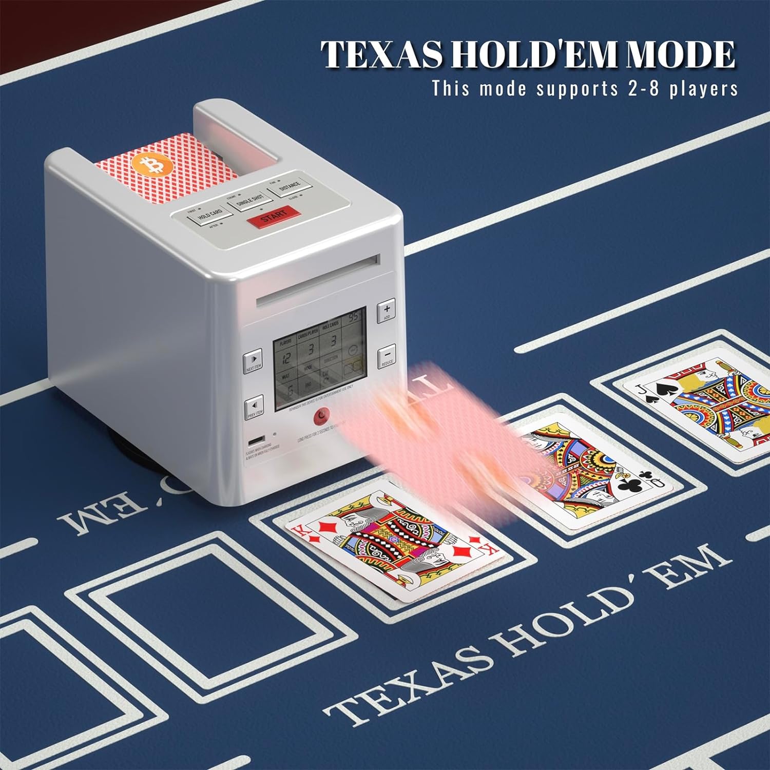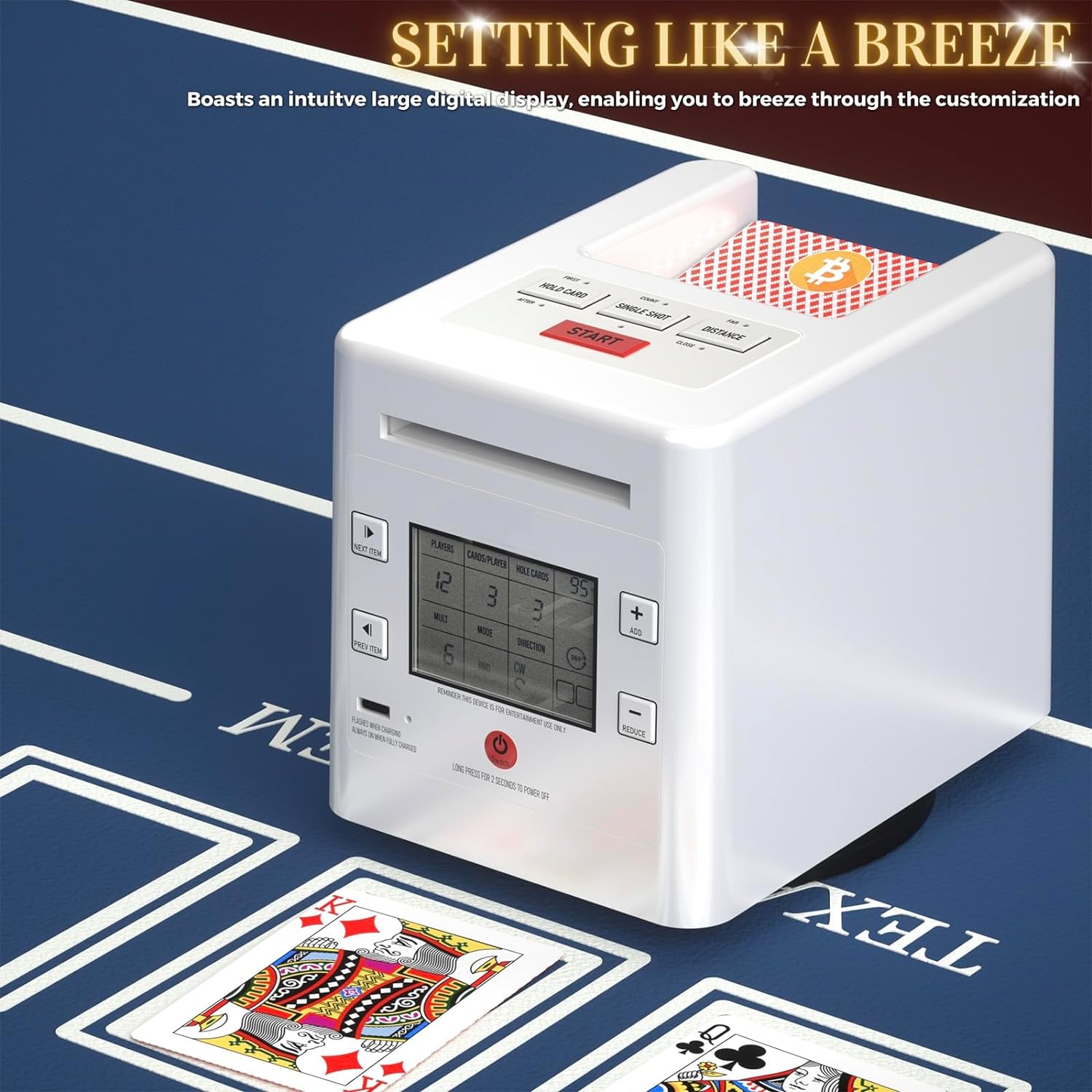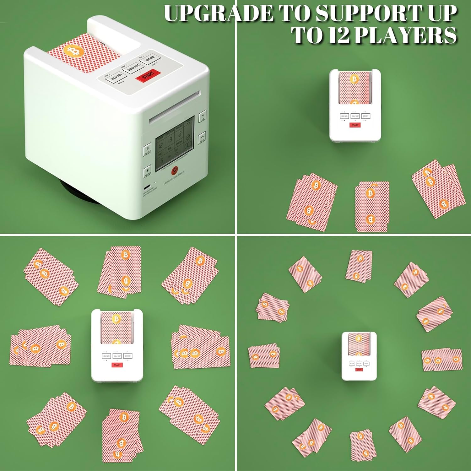 NOTE before purchase: This automatic card dealer cannot physically split the deck of cards like other card shufflers. But if you set the number of cards dealt to each player, the dealing machine can deal a random number of cards to each player each round to achieve a sort of shuffling effect.