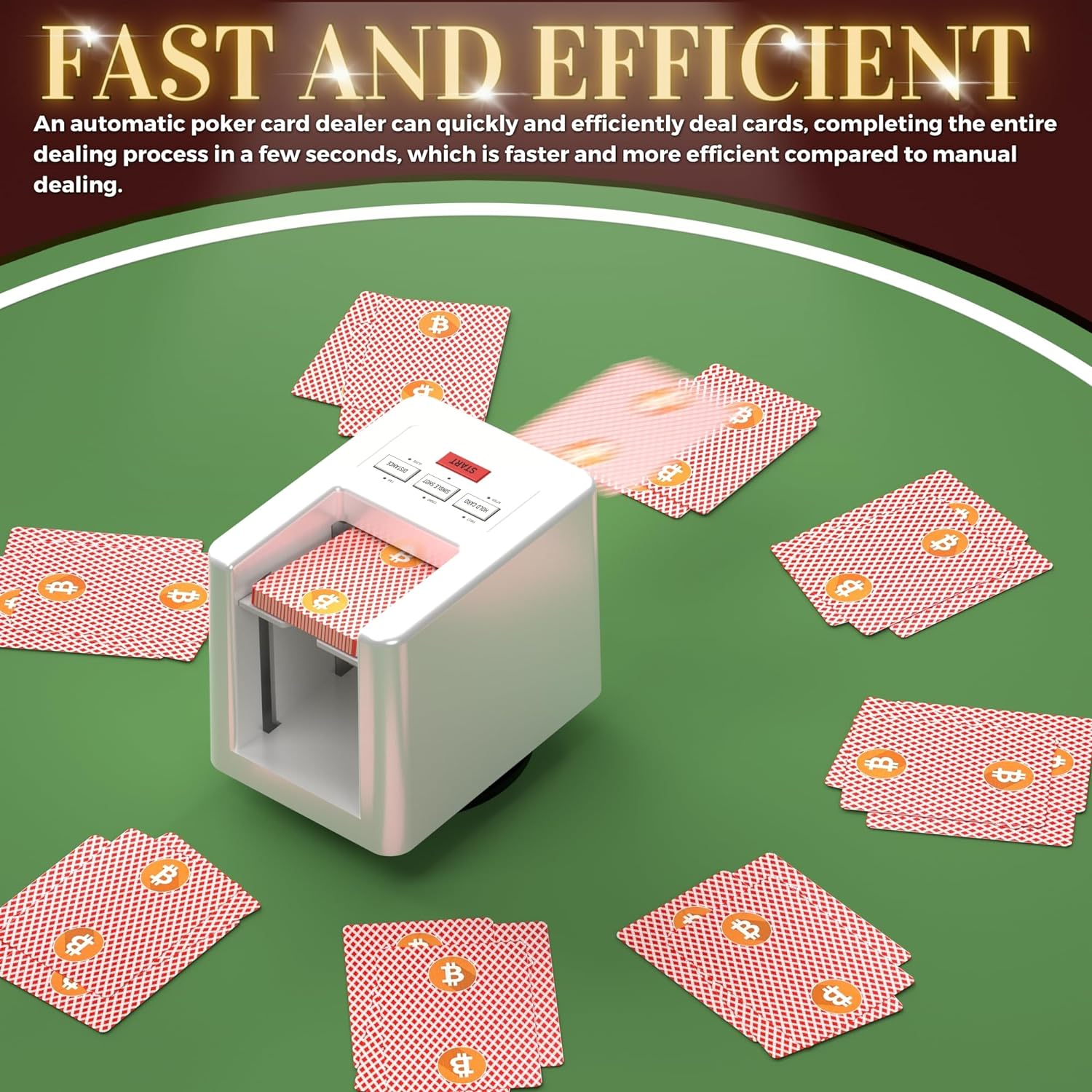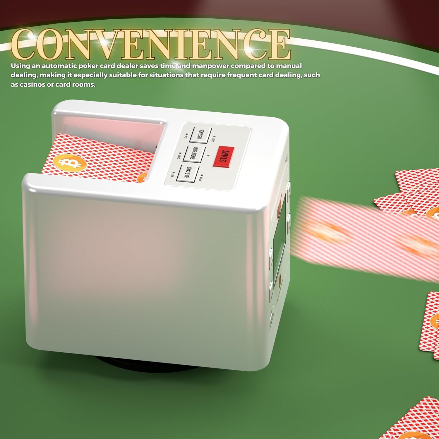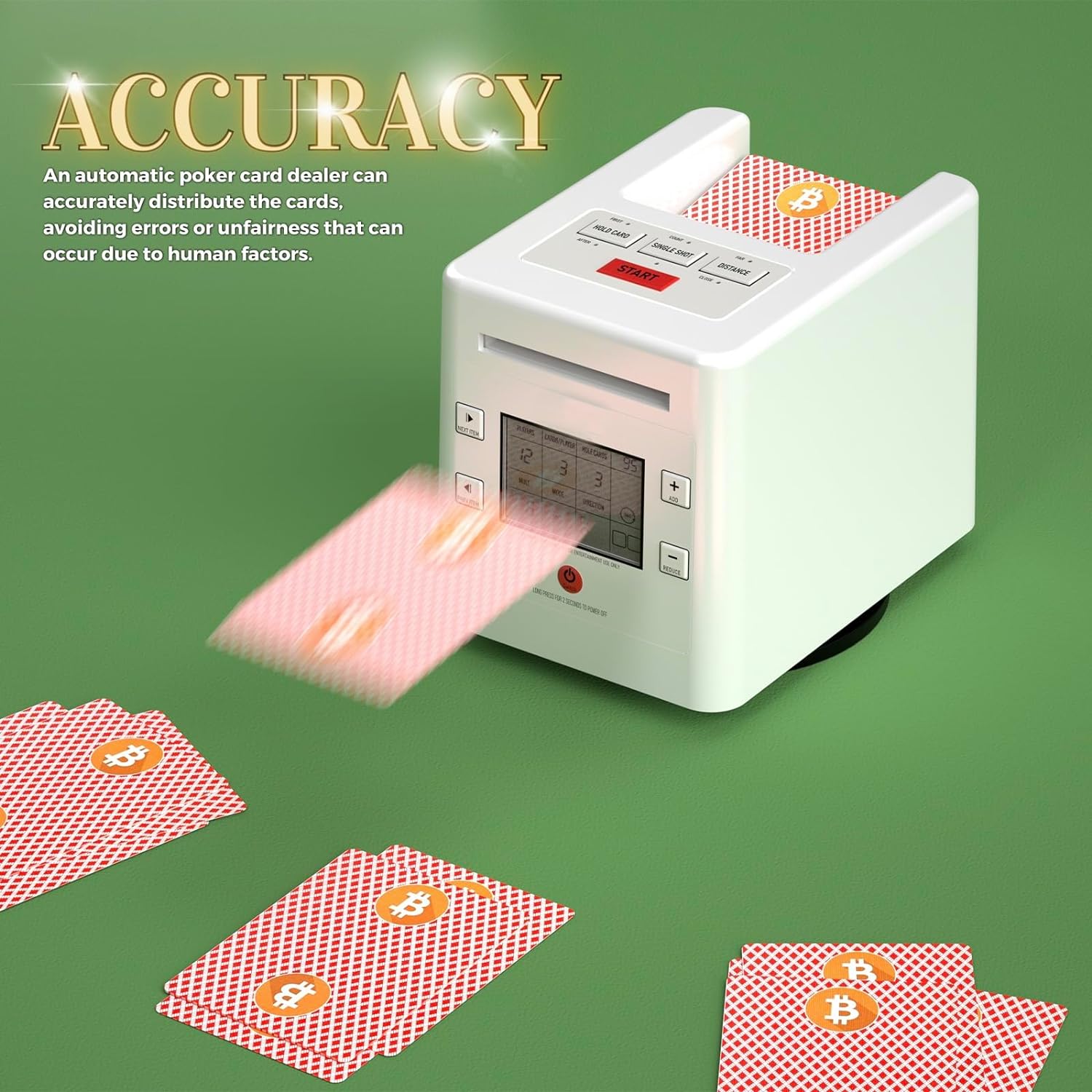 NOTE before purchase: This automatic card dealer cannot physically split the deck of cards like other card shufflers. But if you set the number of cards dealt to each player, the dealing machine can deal a random number of cards to each player each round to achieve a sort of shuffling effect.