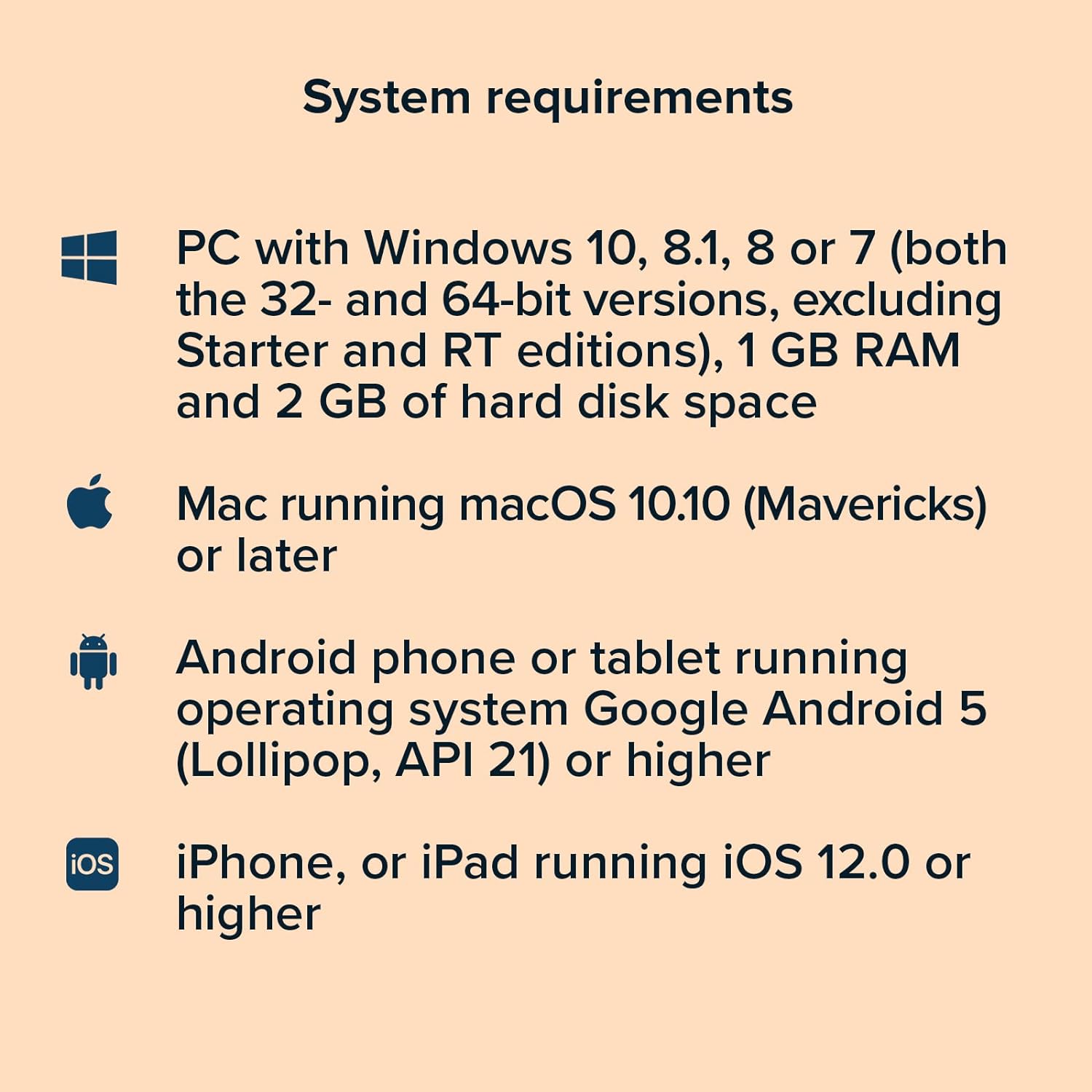 - Operating system: Windows 10, Windows 8, Windows 7, Mac OS X (all), Android