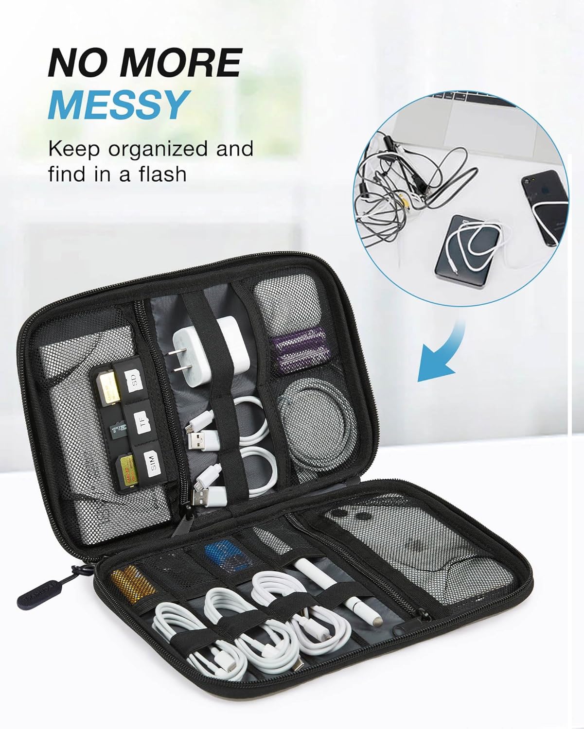 Keep Everything Organized: This travel tech organizer keeps all your devices in one place and prevents cables from getting tangled. You can find travel accessories quickly, without having to chase cables in your backpack. A great companion for your devices while traveling or in the office