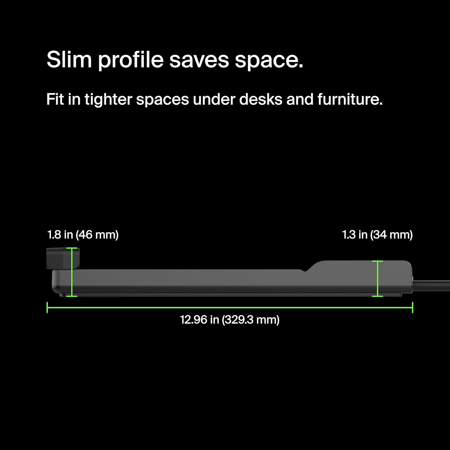 Compact and heavy duty for durable use anywhere: the widely spaced points of sale give a wide area to adapt to large plugs and loaders. Its thin design is ideal for home office, work stations and more. The 2.4M cable has a 3 -pointed angle plug for tight spaces.