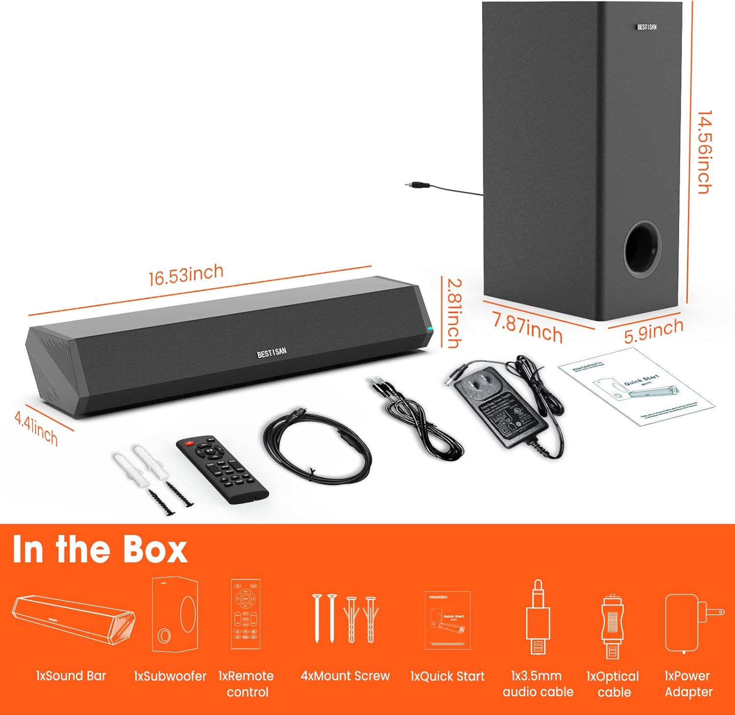 BESTISAN TV Sound Bars with Subwoofer, 2.1 Deep Bass Smart …