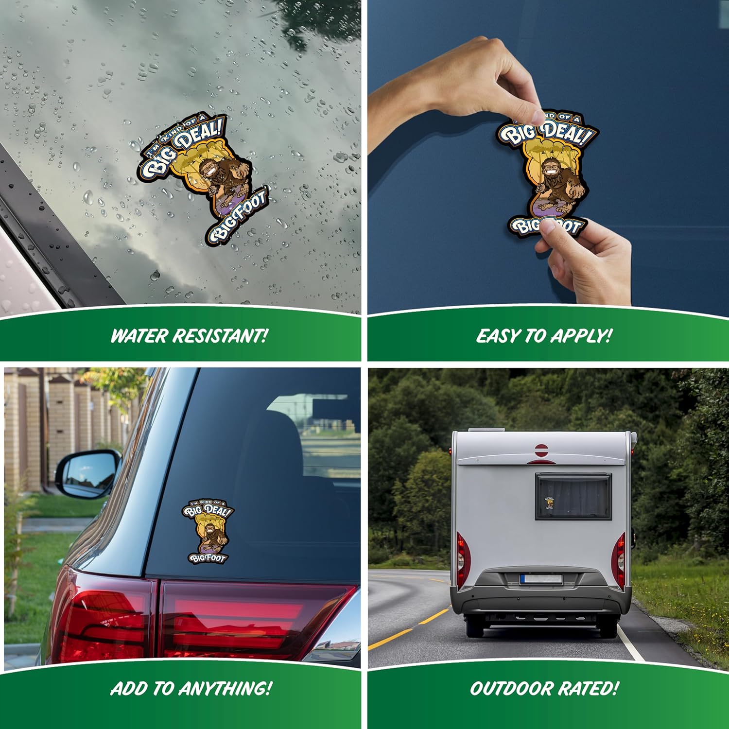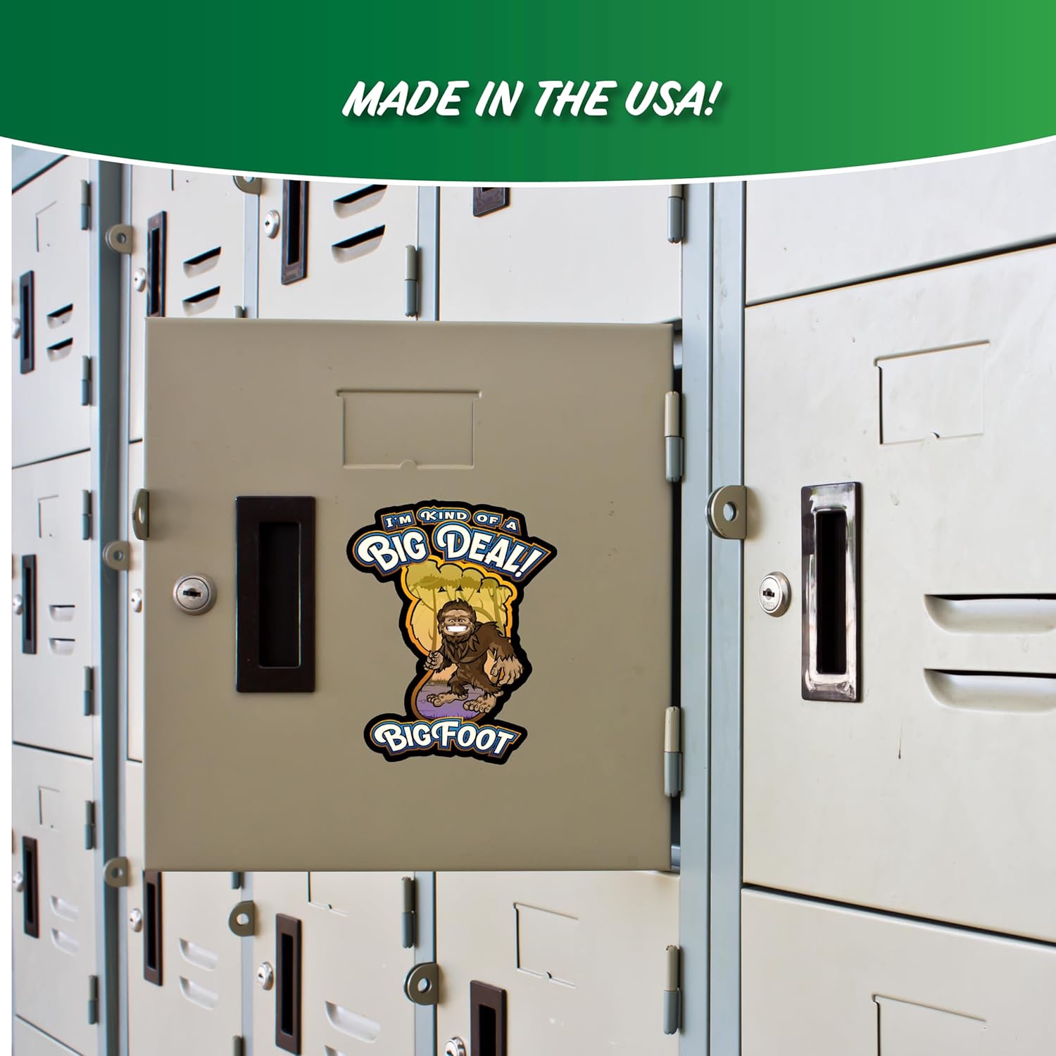 Add a touch of humor and mystery to your belongings with our set of three Bigfoot decals. Featuring a fun design that reads “I'm Kind of a Big Deal! Big Foot,” these decals are perfect for believers, skeptics, and everyone in between. Each decal features a colorful cartoon depiction of Bigfoot, adding a fun and quirky touch to your vehicle windows, laptop, water bottle, or any other smooth surface. Whether you're a true believer or just enjoy a good laugh, these decals are sure to spark conversation and curiosity. With three different sizes to choose from (3″, 3.25″ and 4.75″ tall), you can customize your display to suit your preferences. Go for a subtle detail or make a bold statement – the choice is yours. These decals are made from heavy duty outdoor-rated vinyl and are made in the USA to last. Rain or shine, these decals will stay vibrant and intact, allowing you to show off your love for Bigfoot wherever your adventures take you. Join the fun and embrace the mystery of Bigfoot with our set of three fun decals.