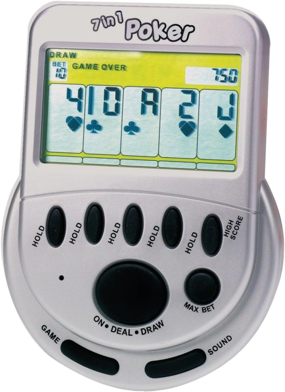 The exciting Mega Screen 7-in-1 portable poker game offers hours of fun whether you're on the go or just having a moment to relax. It's lightweight and conveniently small, so you can choose from 7 fun poker games. It features a large screen and automatically shuts off when idle. Be sure to pick up the Mega Screen 7-in-1 portable poker game!