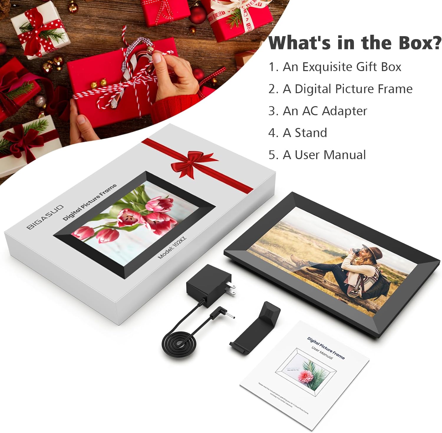 BIGASUO 10.1 Inch WiFi Digital Photo Frame, IPS HD Touch Screen…
