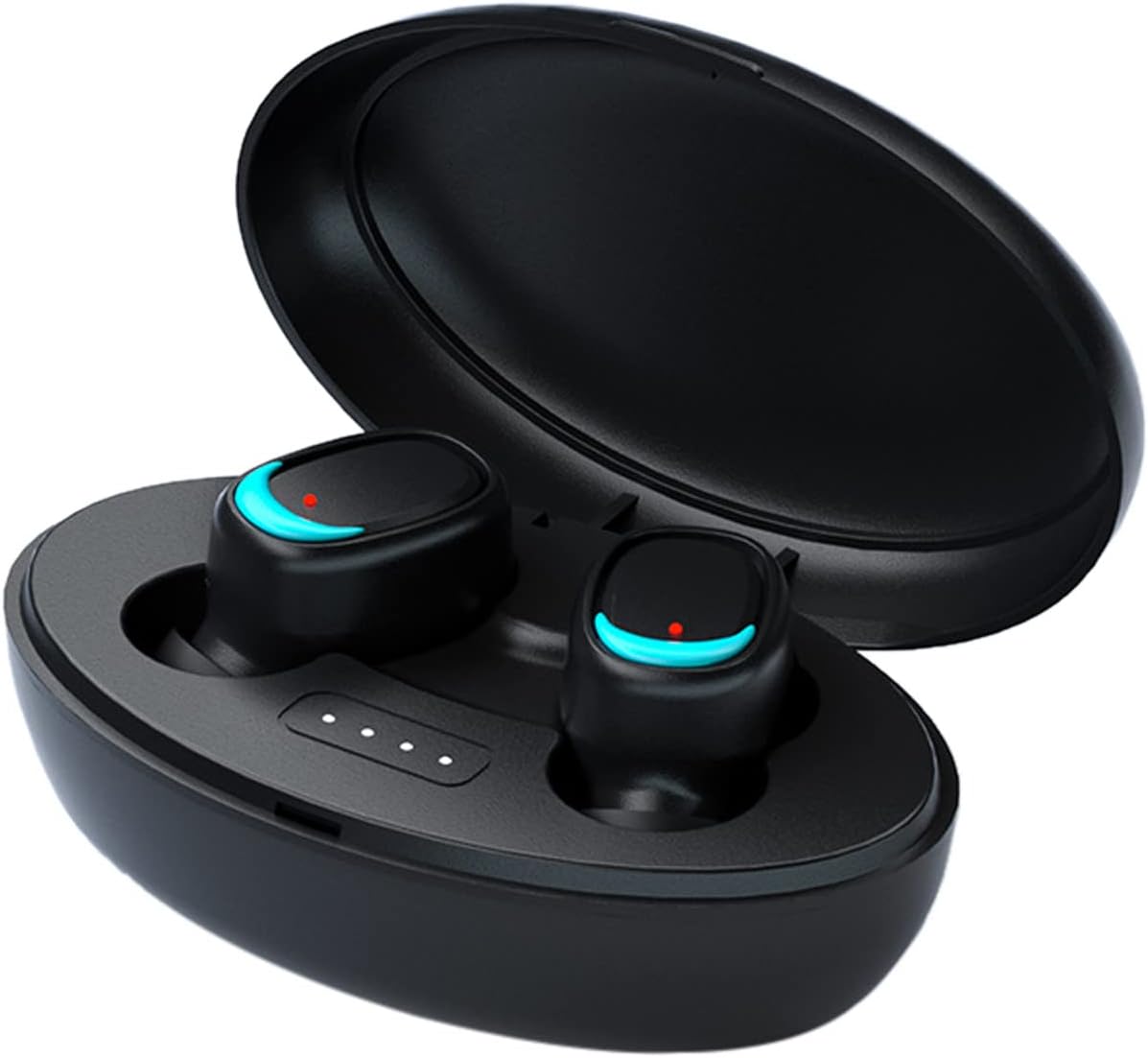 Bluetooth earphones with charging case with 300mAh battery capacity. The 300mAh charging case is portable for going out. It is for storing the charging case, which is convenient and practical. There is no need to worry about losing the earphones because you have nowhere to store them.