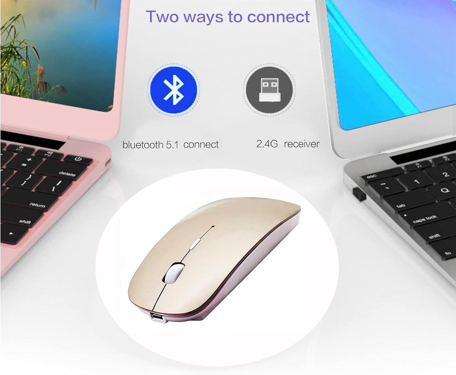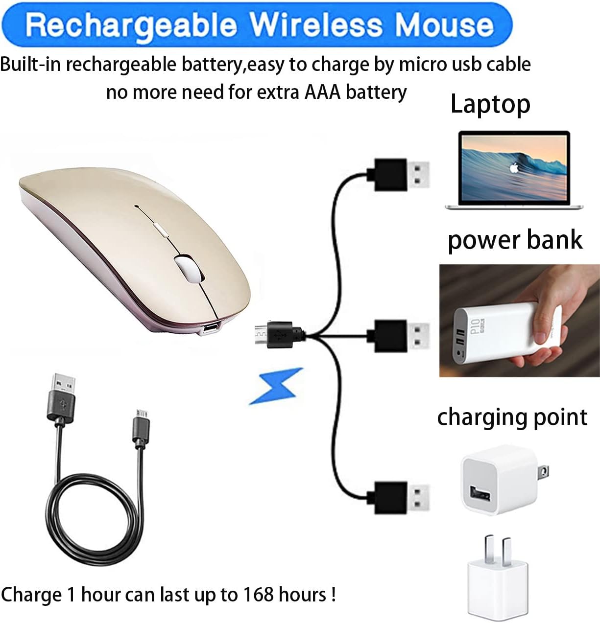 Bluetooth 5.2 Wireless, gold, rechargeable, ergonomic mouse …