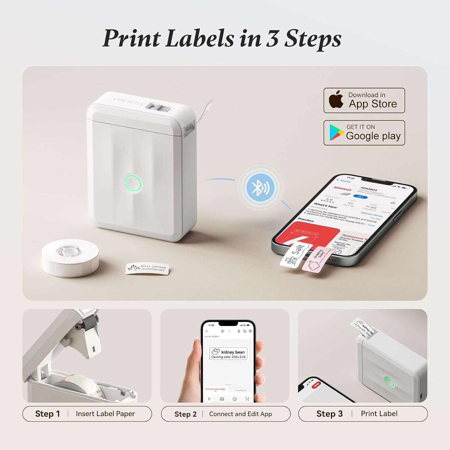 Easy to use: The Niimbot D110 label manufacturer with tape admits batch printing and wireless connection with the “ niimbot '' application, which is a simple configuration and installation. No ink or toner is required, compatible with IOS and Android smartphones. Fully loaded in just 2 hours with cargo cable C. Note: This label manufacturer does not work with computers.