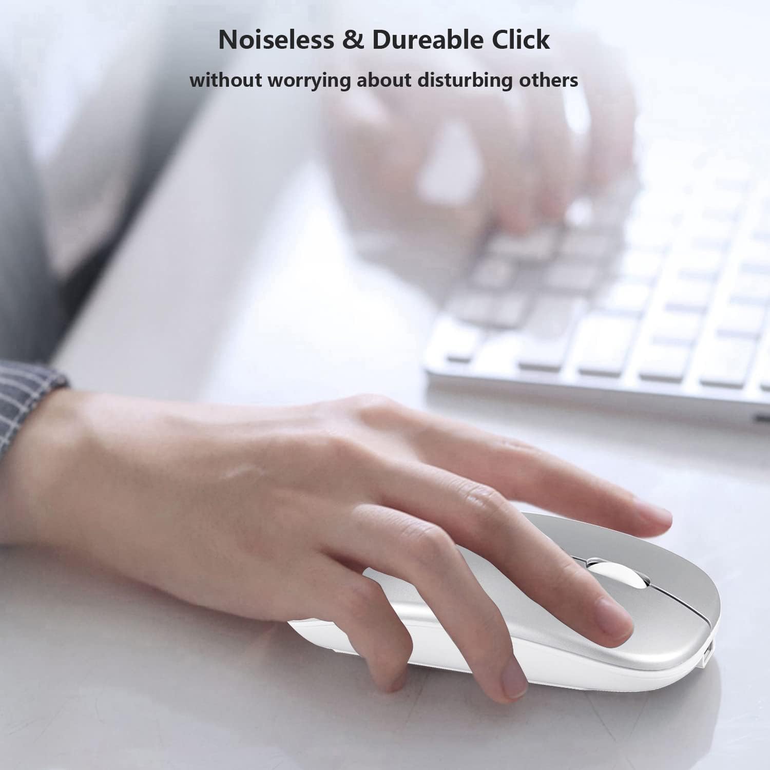 Light weight and quiet click: The silent click design can reduce noise by up to 90%, so you can concentrate on your work and study without worrying about altering others. Light and portable design allows you to easily take it, which is perfect for the office, home, meetings and business trips. Mouse dimensions: 11 x 5.8 x 2.7 cm, weight: 60 g (size: 4.33 x 2.3 x 1.06 inches, weight: 2.12unce).
