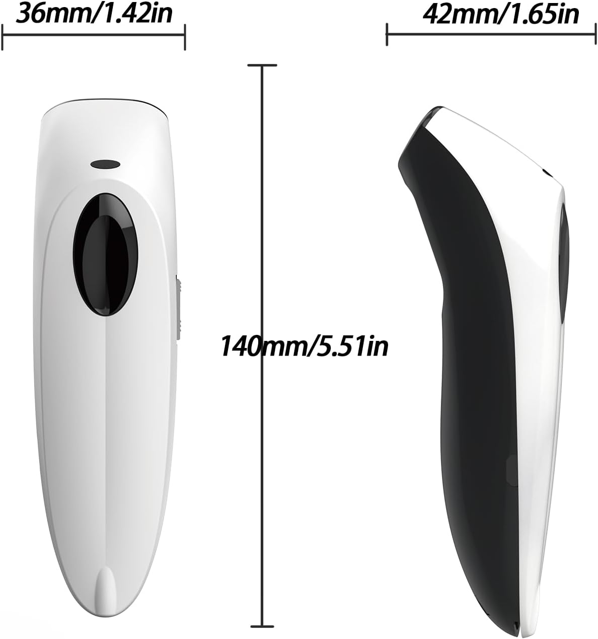 【Ergonomic design】 Exquisite ergonomic design, weighs 110 g, with a feeling of comfortable grip and operating a lot of time without fatigue. {Notice}: There is a switch on the right side of the scanner, press before scanning. A one -year repair and replacement service is provided. This model is not compatible with Square and Shopify Pos, if you have any questions. Please contact us on time