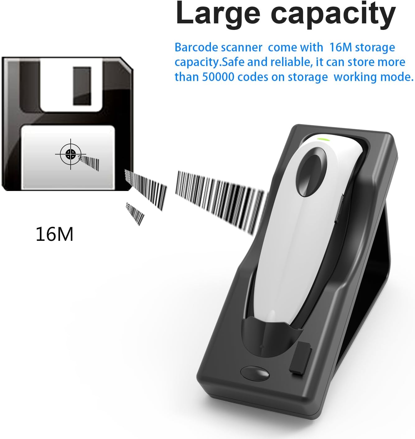 Portable qr code reader scanner 【Mass storage offline】 Incorporated memory of 16 MB of high capacity, admits 50,000 code code QR code of out -of -line storage.