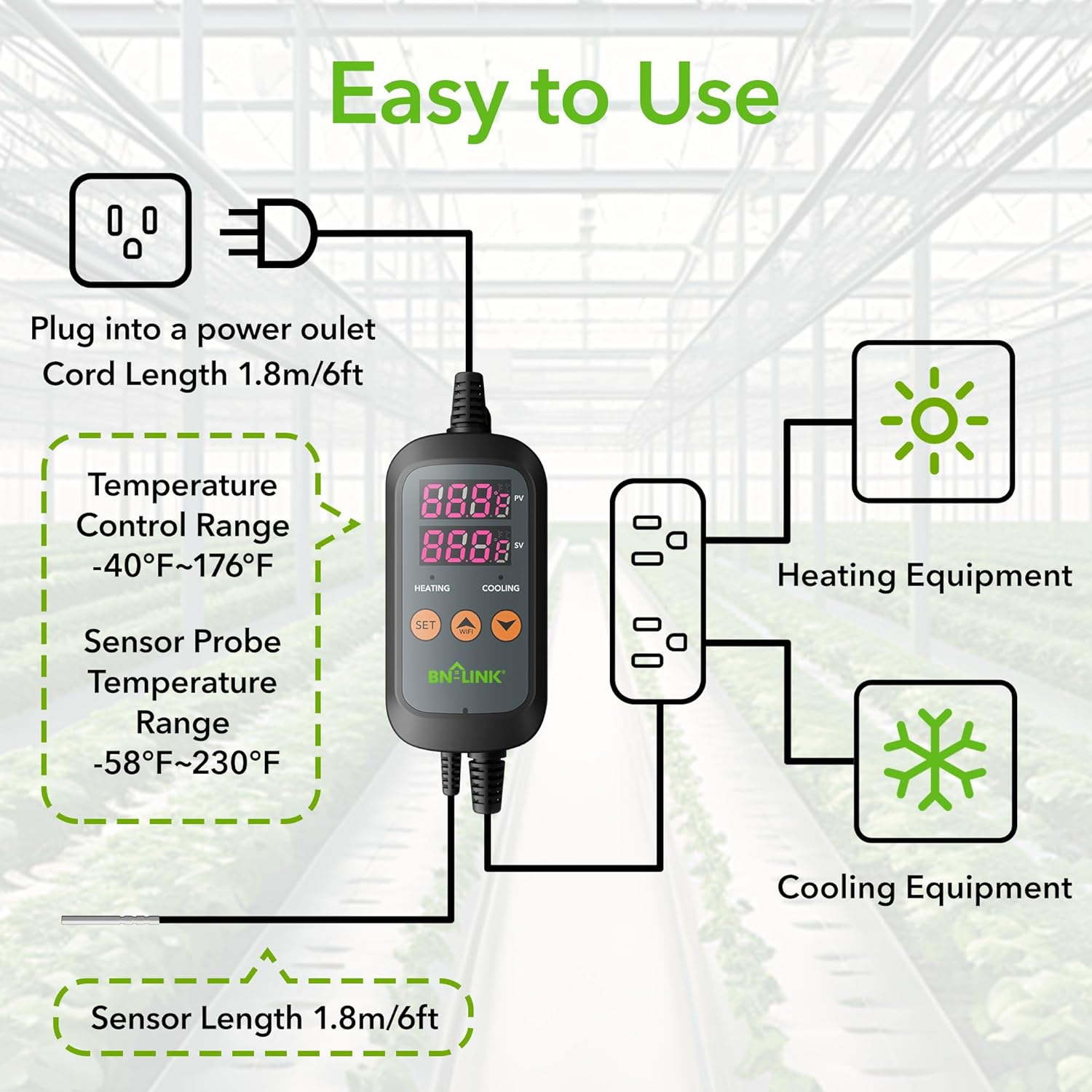 【Professional Grade】The temperature controller owns a 5.9ft high precision waterproof sensor probe with working temperature from -58°F to 230°F; Controller with working temperature from -40°F to 176°F. Maximizes its functions.