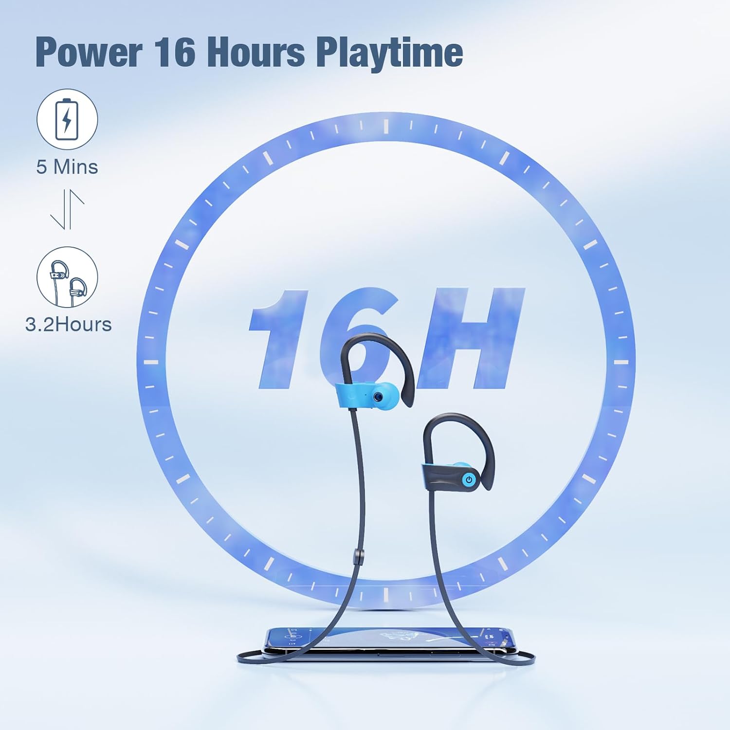 Up to 16 hours of playback: With an upgraded lithium polymer battery, Boean sports headphones offer up to 16 hours of playback. Enjoy a superior audio experience with greater endurance. (Note: Please use the charging cable provided in the package)