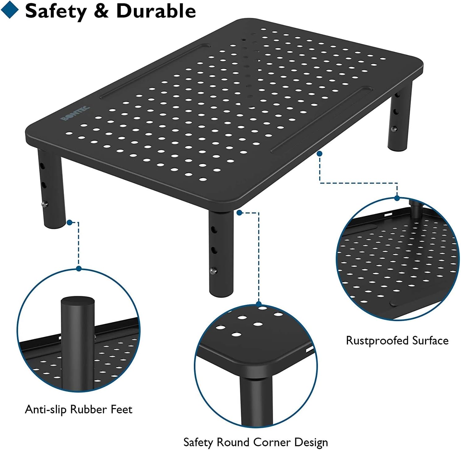 【Easy to assemble】 Our adjustable monitor elevator comes with a platform and four legs for simply assembly with the easy to follow instructions. No tools are required. When applying the control button on the leg to lift the platform to adjust the desired and adequate height level. Friendly Note: Please use the soft cloth to clean this computer elevator.