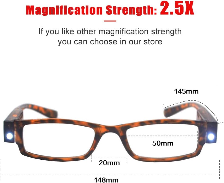 Lighted reading glasses help you have clear vision with or without lights.