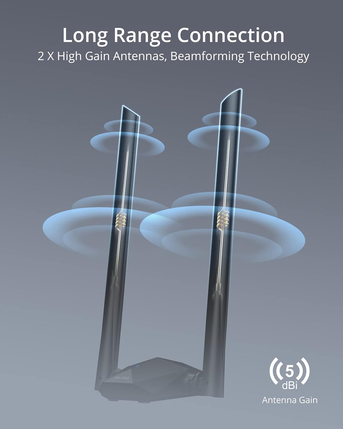 Broader Range: 2 pieces of 5dBi high gain antennas ensure stronger signal reception through multiple walls and floors. Beamforming technology delivers targeted signals and reliable connections no matter where your PC is located