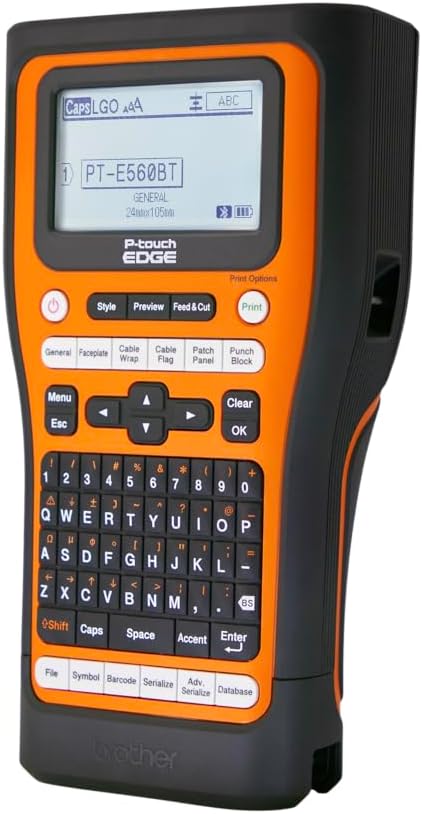 Prepare the work with the Brother P-Touch Edge 560BTBP Bundle, offering a powerful contractor grade label solution with 6 tapes included. Perfect for large projects, the PT-E560BT industrial label printer is loaded with characteristics designed to optimize the labeling, from the storage of the database and the serialization to the QR code and the creation of bar codes. Printing lasting laminated tags and heat removal tubes up to 24 mm effortlessly with rapid application keys and a rule included. This package includes 6 laminated tapes resistant in various sizes and adhesive resistances, so it is equipped to label virtually any surface: soft, rough, flat or cylindrical. With Bluetooth connectivity, compatibility with USB-C and an automatic medium cutter size for an easy label application, this printer adapts to its workflow. A safe hand strap and a long -lasting battery make it the ideal tool for site efficiency, which saves time and cost. Layers included: Tzefx251 Black on White flexible flexible tape 0.94in x 26.2ft (24 mm x 8m) Tzefx221 White in white In white adhesive cover extra Starita tessels adhesive adhesive White (12 mm x 8m) tzes251 black on White extra resistance Adhesive tape 0.94in x 26.2FT (24 mm x 8m) Tzesl251 Black autocontrol labels 0.94 inches x 26.2FT (24 mm x 8m 8m)