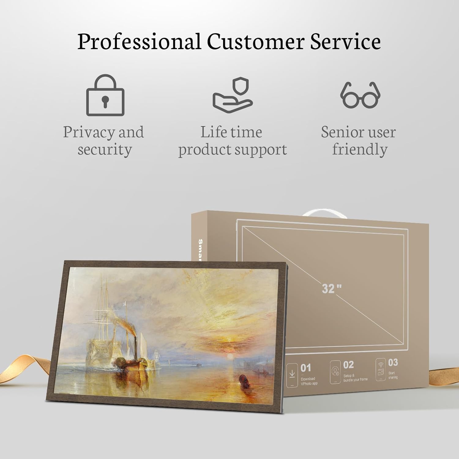 PROFESSIONAL DIGITAL PHOTO FRAME & DUAL BAND WIFI: BSIMB large digital photo frame that displays your art collection and treasured memories with sharp data and extra clear images for an even broader and enriching viewing experience. This large digital photo frame allows you to share video clips and photos securely and privately over WiFi from anywhere using the VPhoto app and email, making photos displayed in one place to bring them all to life. the precious moments. This large digital frame works with 2.4GHz and 5GHz dual band WiFi, you can share photos and videos instantly and securely from anywhere.