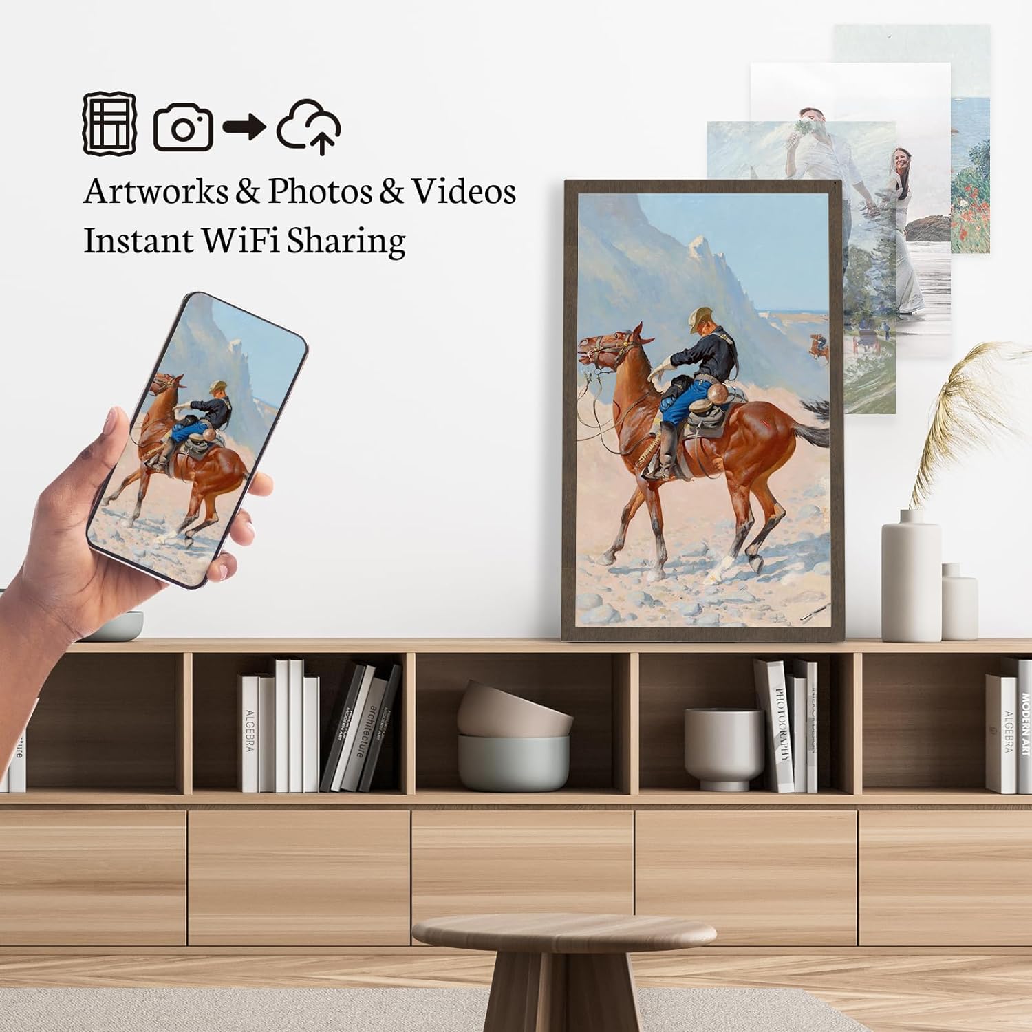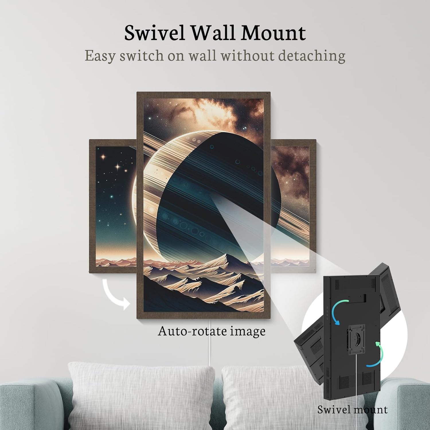 ART DECORATION for YOUR WALL: The wall-mounted design offers a rotating bracket, making it easy to rotate when mounted on the wall for a better viewing experience, you can enjoy realistic images that transform your space into an art gallery. Ideal for decorating the bedroom, living room or office, the BSIMB large digital frame can also serve as an effective advertising board for product marketing purposes.