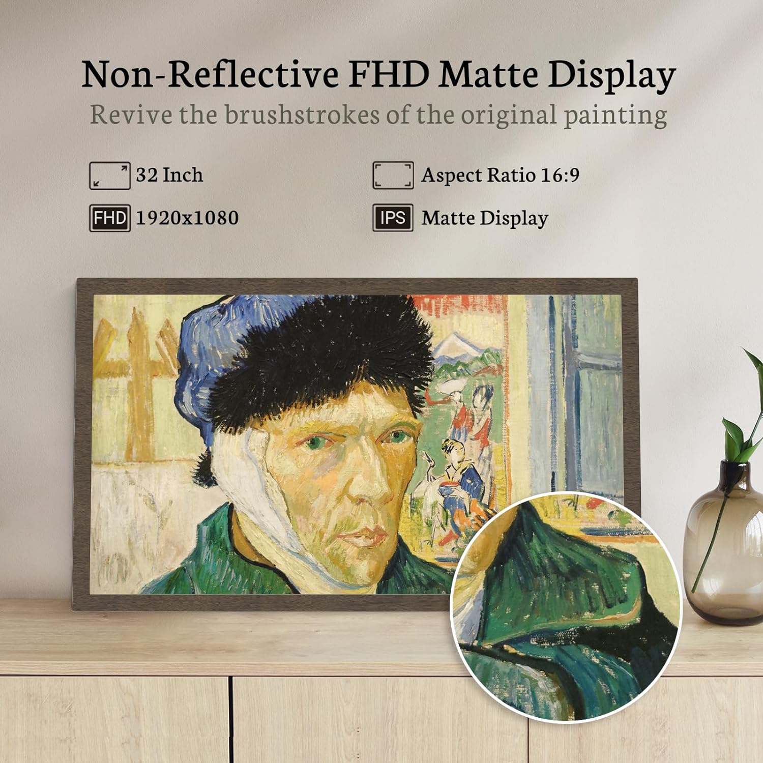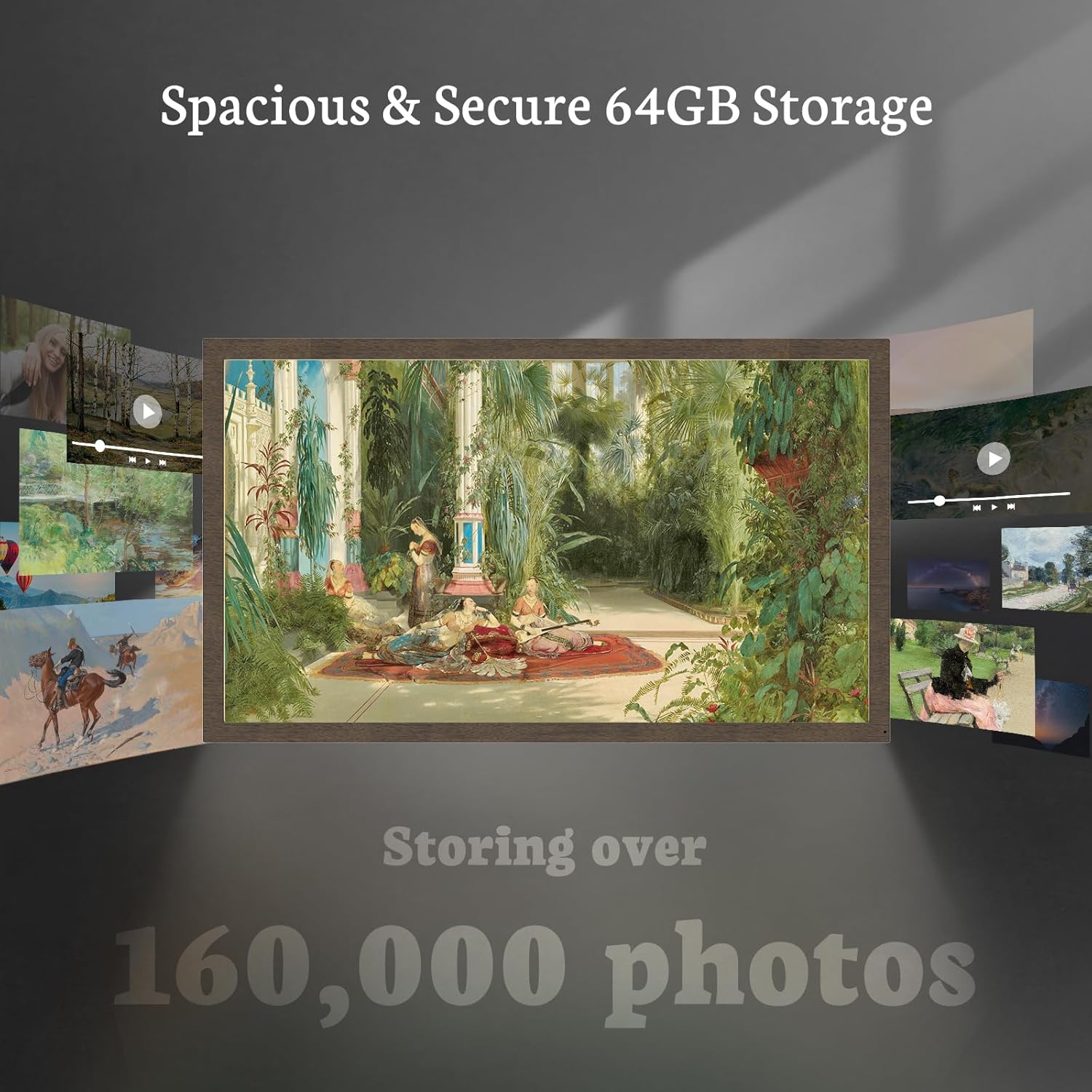 64GB MEMORY AND 32-INCH ULTRA FHD MATTE SCREEN: This digital art frame features an extra-large 32-inch screen, with 1920 x 1080 resolution and 16:9 aspect ratio, displaying your art collection and Cherished memories with crisp data and extra-clear images. for an even broader and enriching visual experience. The remote control and easy-to-use interface provide effortless operation, making it suitable for all ages. BSIMB large digital photo frame with 64GB internal storage, the digital photo frame can store up to 160,000 photos. NOTE: The battery type of this remote control is AAA+, not included in the package.