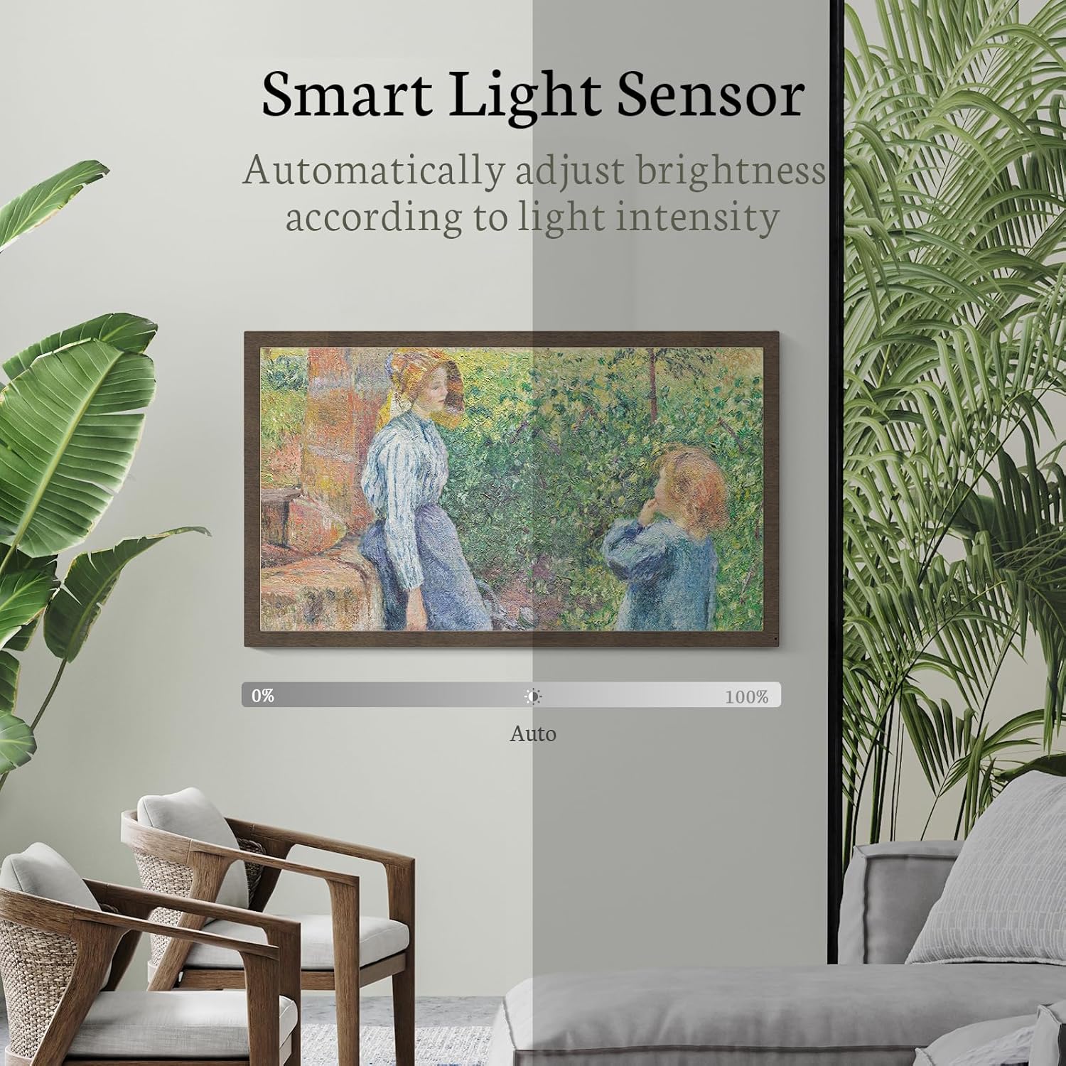 The light sensor allows the digital photo frame to automatically adjust the brightness for an exceptional viewing experience.