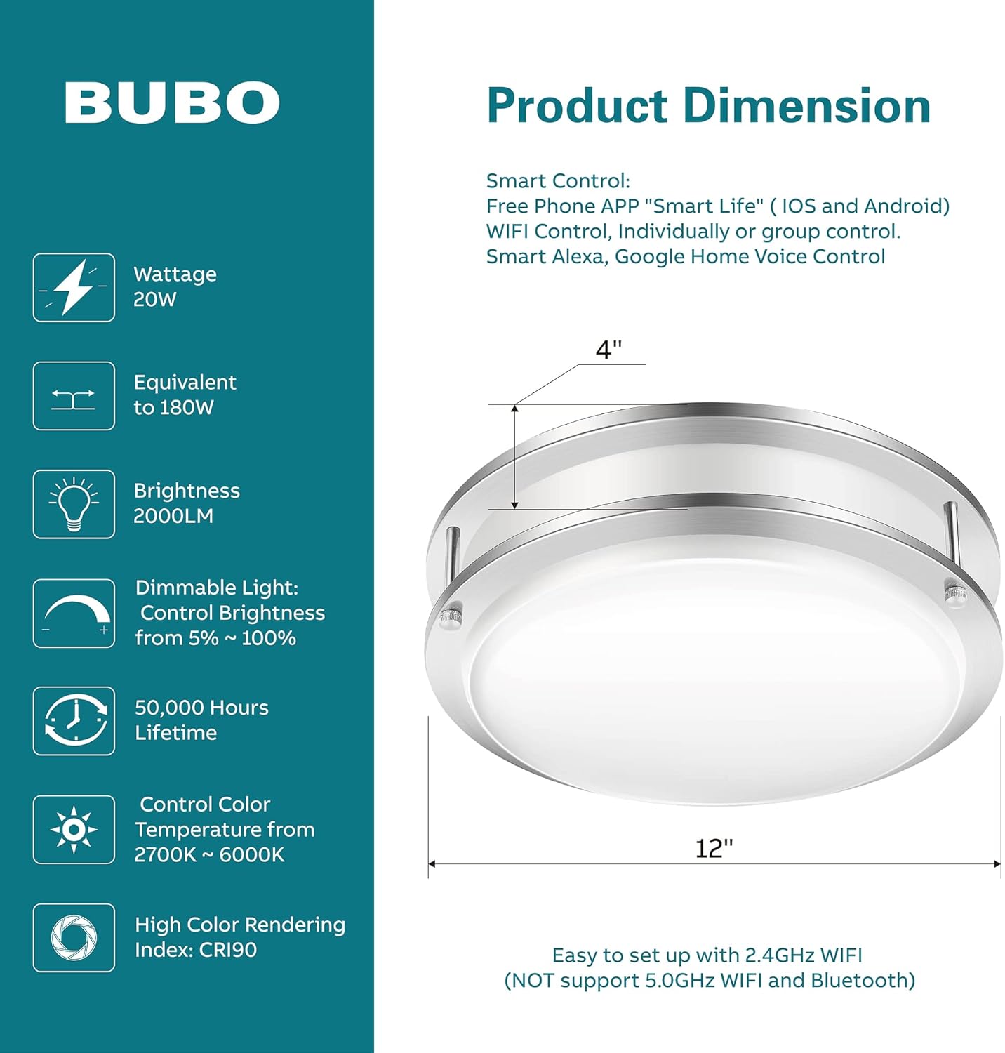 BUBO Smart Flush Mount Ceiling Light, 12 Inch WiFi Ceiling Lamp…