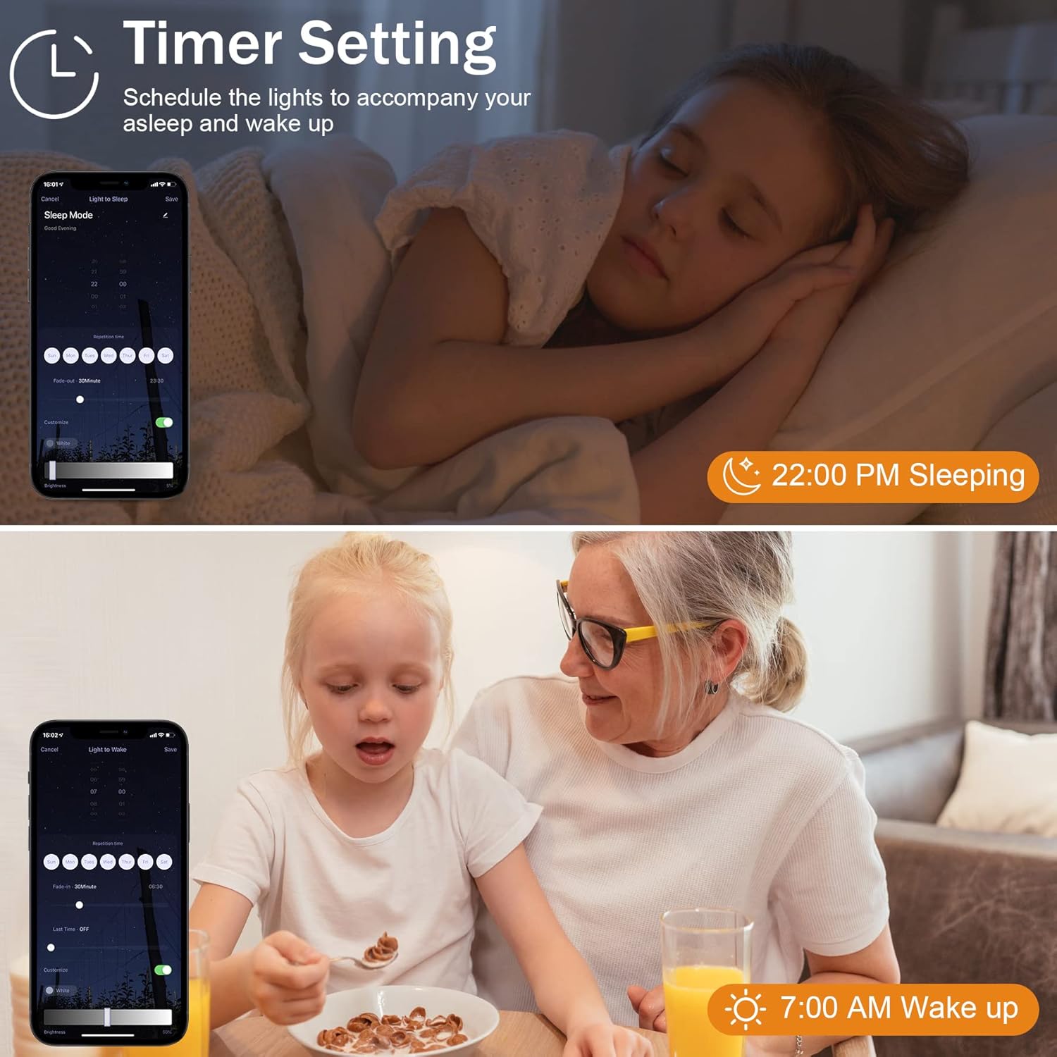The LED strip light has a timer function, it can be configured to wake it up at certain times. Be his “” Acestador “” light, which will eliminate his fear or fear of his baby's darkness.