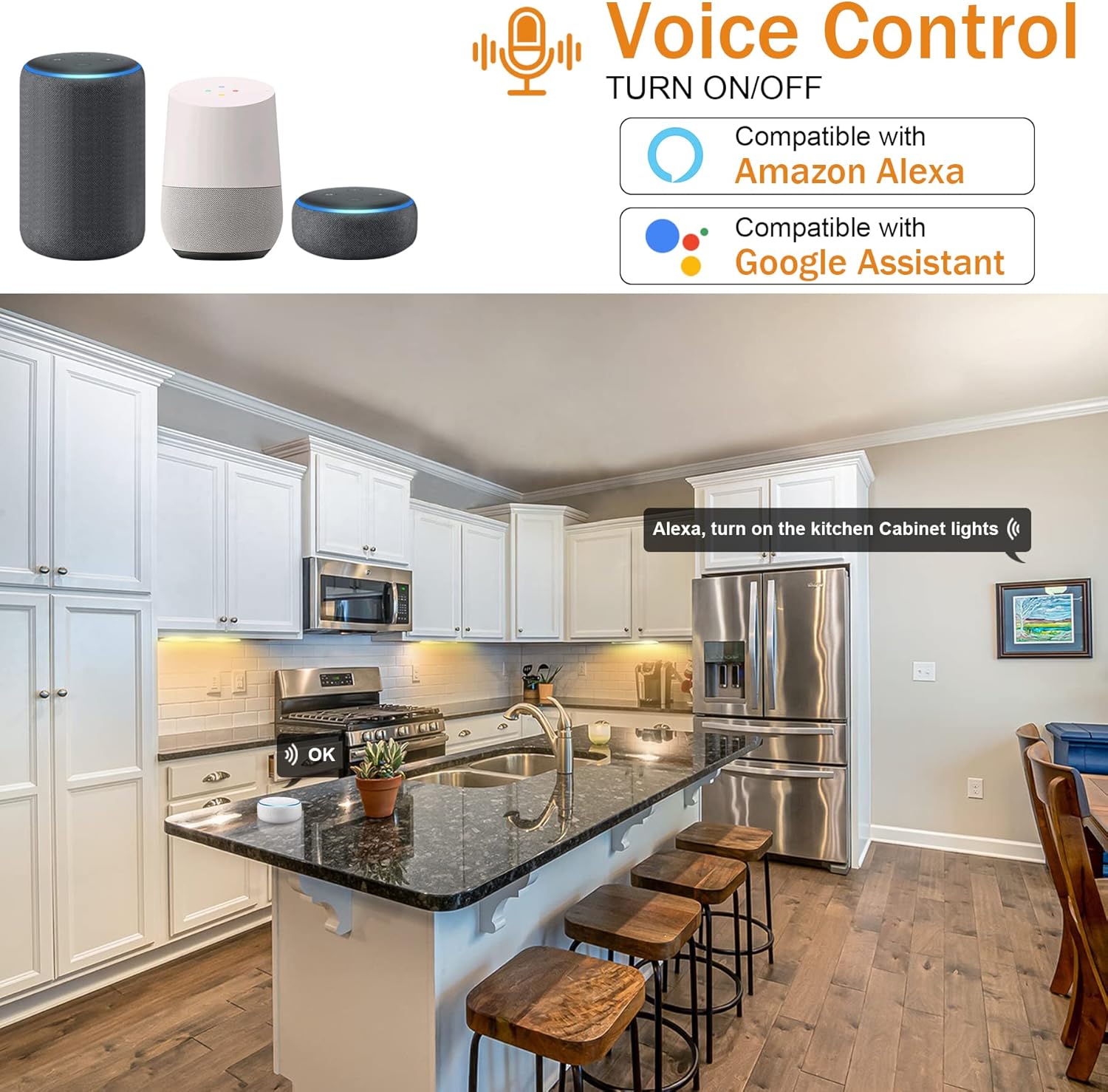 Control the smart lighting system under voice cabinet