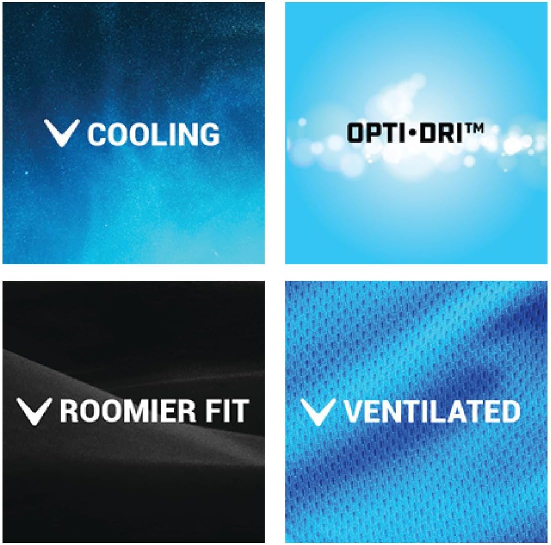Our Opti-Dri moisture-wicking technology moves sweat away from your body so you can cool off in the heat and Opti-Vent engineered ventilation for added comfort and cooling action.