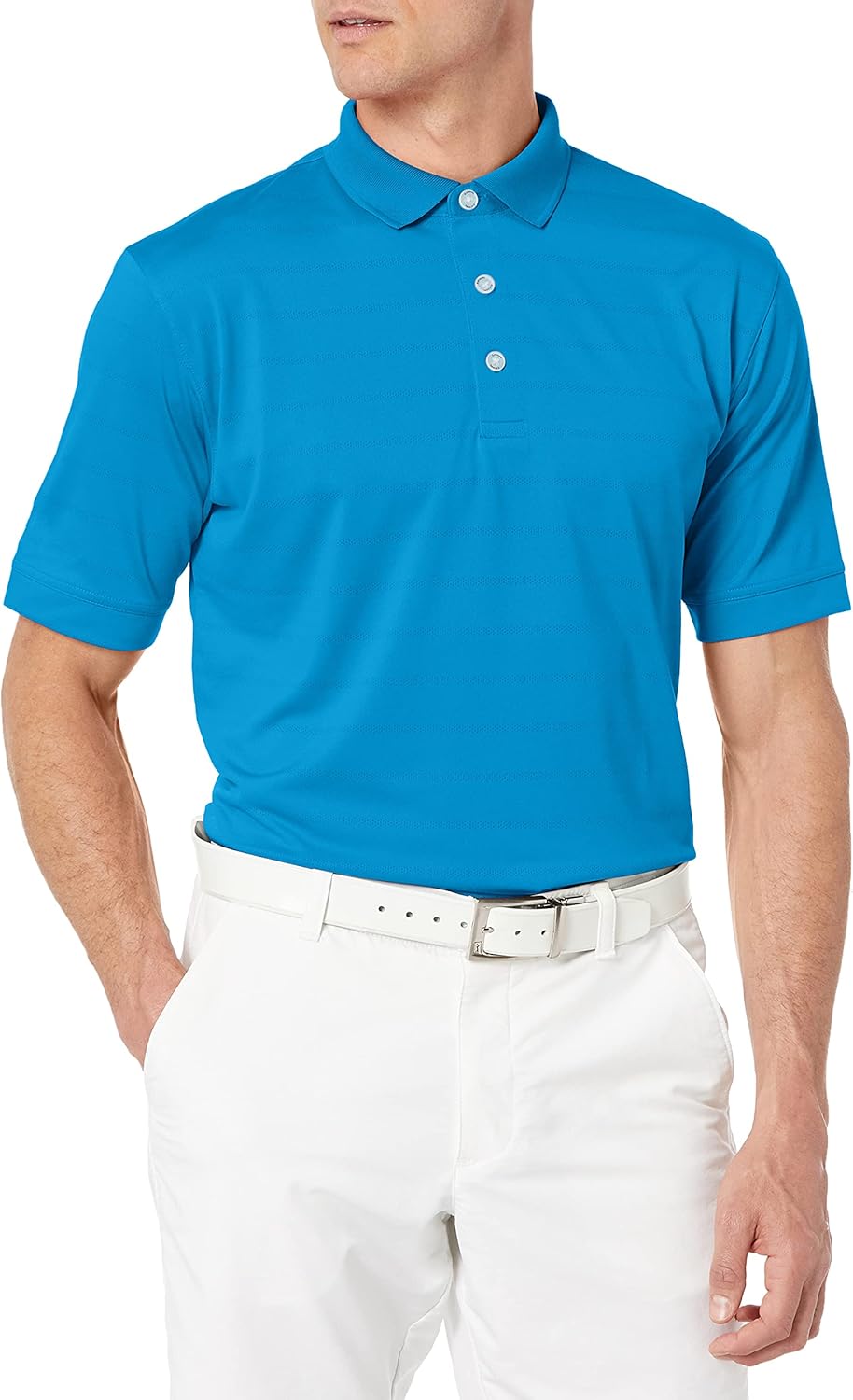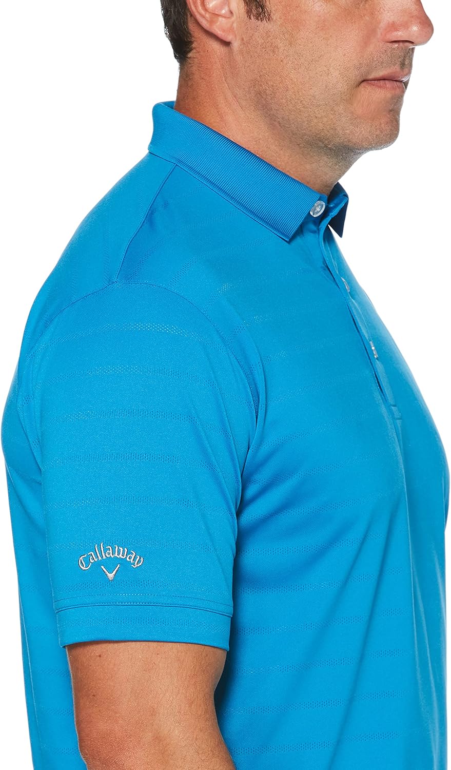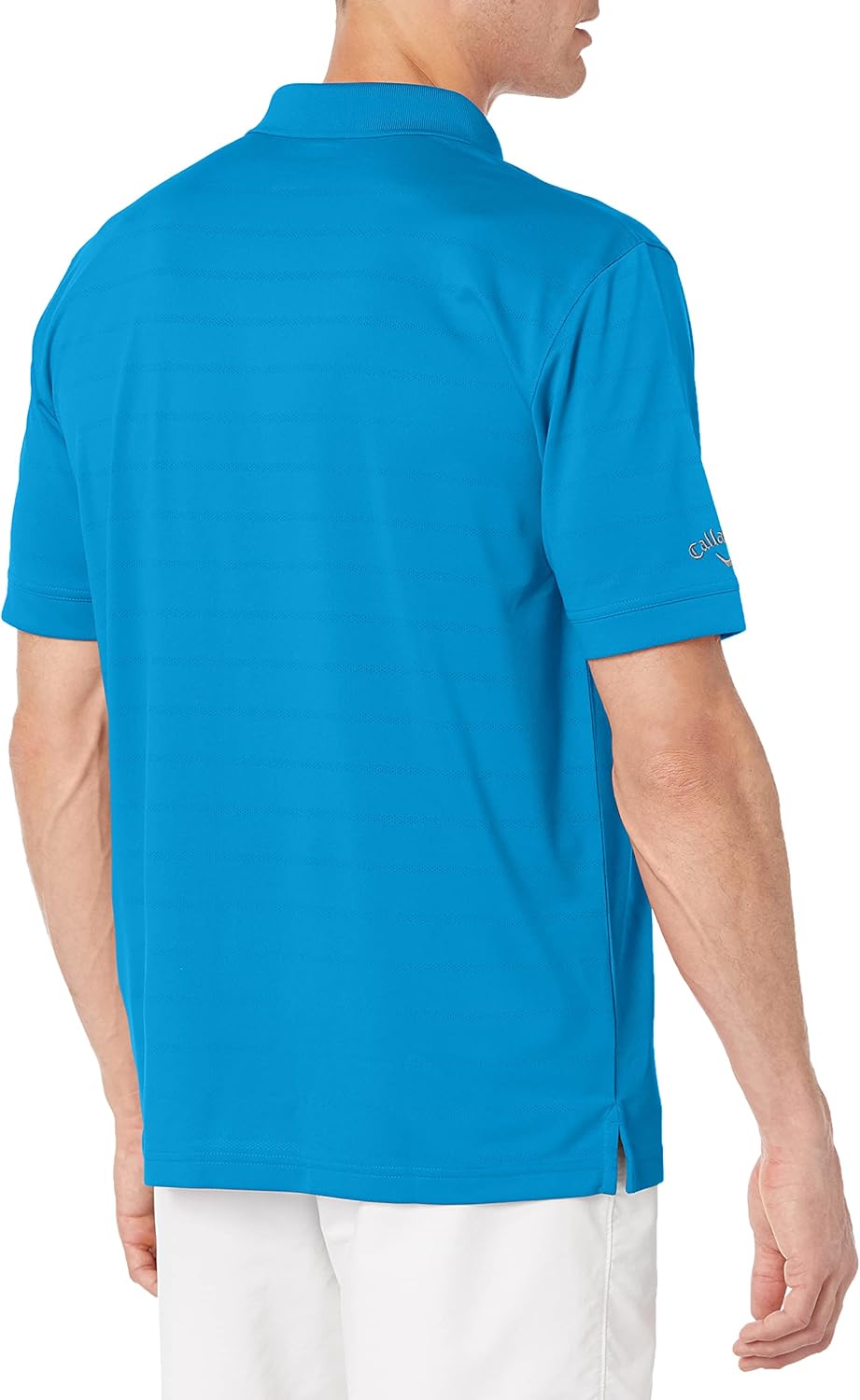 The elegant horizontal stripes are done in a light shade, accentuating the main color and providing a subtle two-tone effect. Our Callaway Tour Heat Seal logo is located on the right sleeve.
