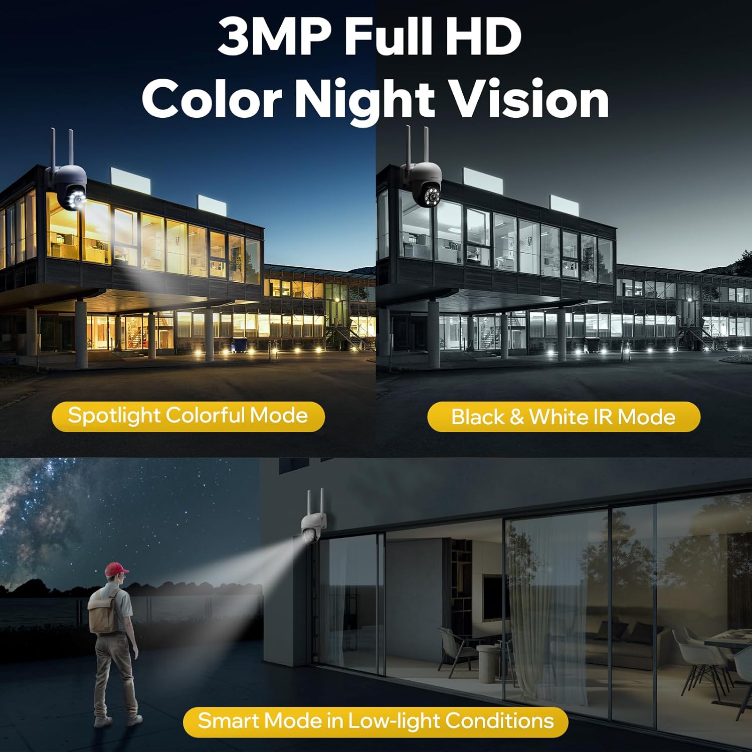 3MP HD IMAGE & COLOR NIGHT VISION: The non-WiFi wired security camera system with monitor equipped with a 1/3″ CMOS sensor and 3D digital noise reduction imaging technology, displaying an image Pure and delicate 3MP HDR (2340x1296p). With 4 spotlights, when turned on, you can see full-color images of the passerby and license plate at night within a range of 65 feet.