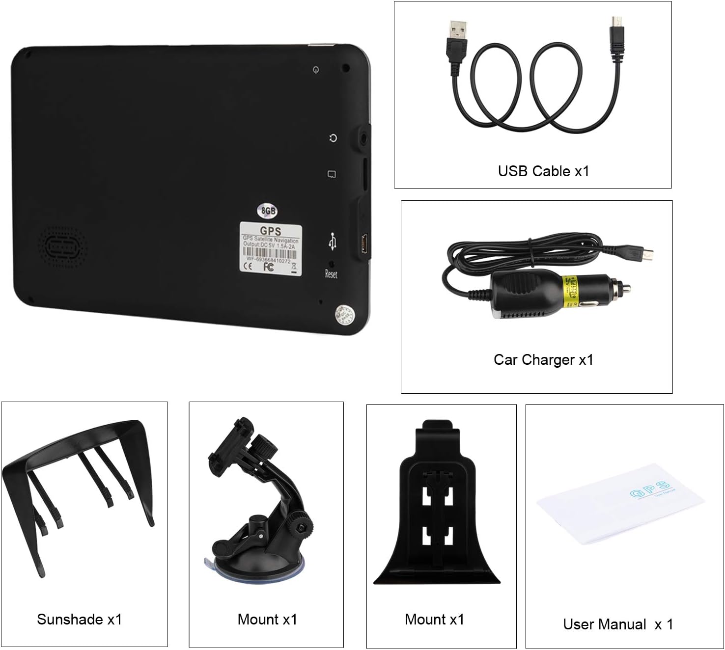 [9-inch satellite navigation with sunshade] The large 9-inch touch screen responds quickly and without delay. The natural color brings comfort to your eyes. The uniquely designed sunshade can be used for sit-down navigation, which can effectively block sunlight during the day and prevent glare at night. so view routes and navigation easily hands-free