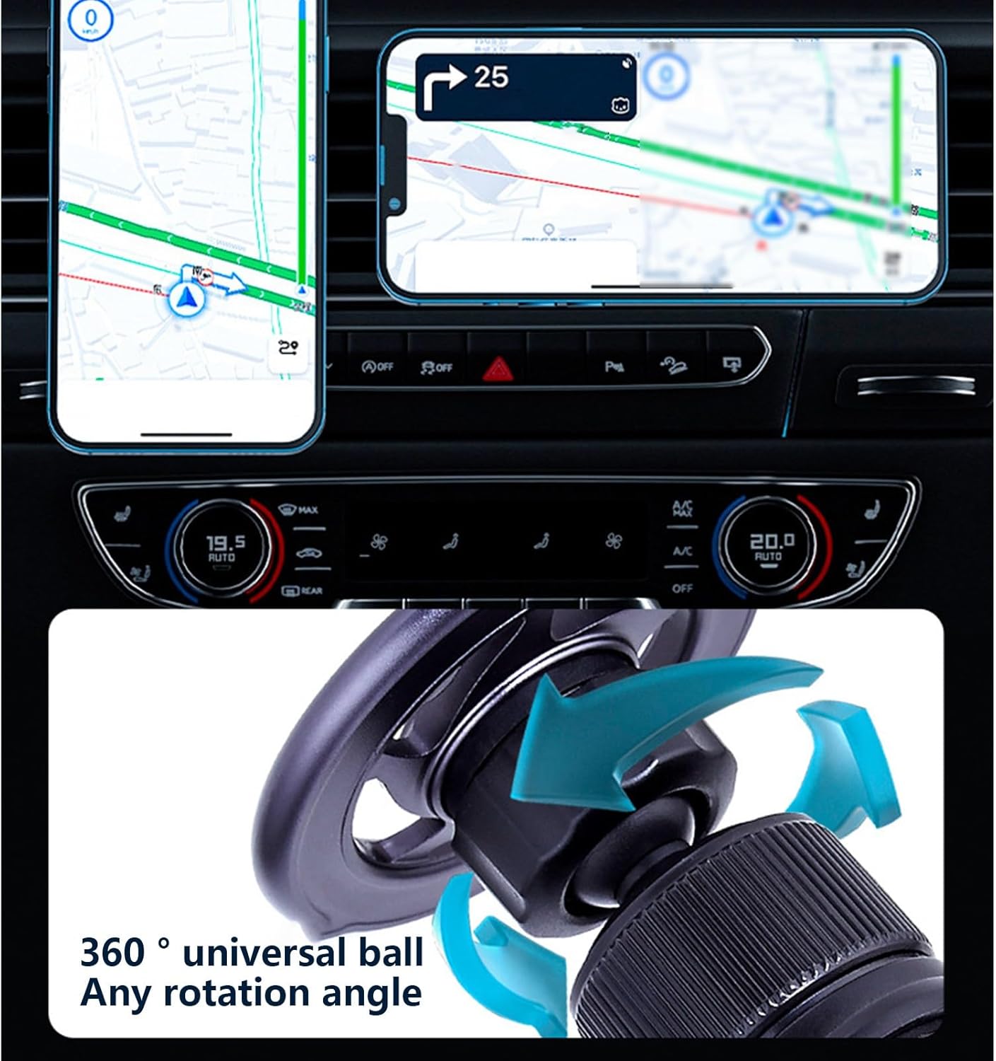 Flexible Angle: 360° free rotation universal ball, 360° flexible rotation to suit your driving vision