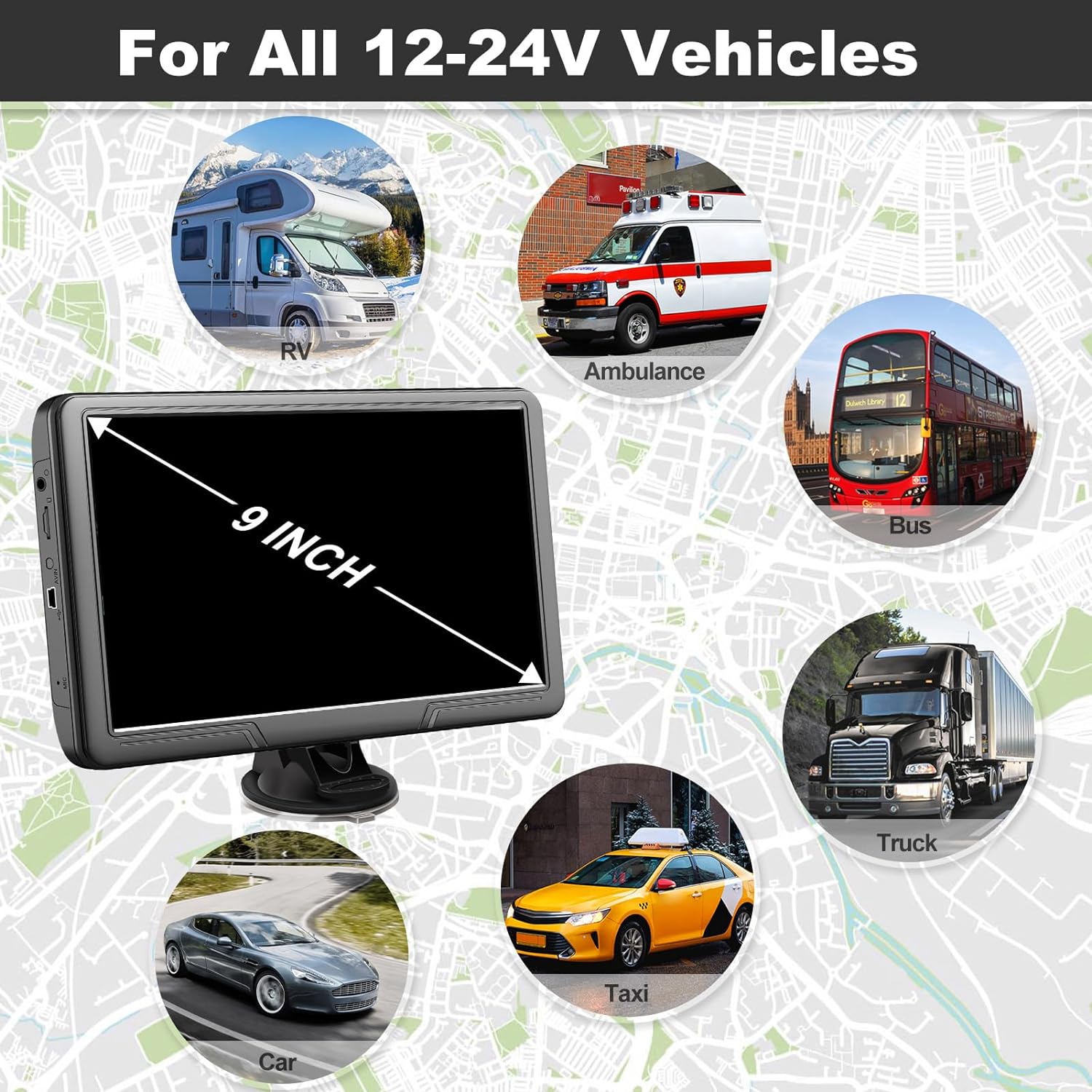 Truck GPS Navigation – Lehwey vehicle GPS for all 12-24V vehicles supports 7 navigation modes: Truck, Car, Bus, Pedestrian, Taxi, Bike and Emergency. The professional truck navigation mode is particularly impressive; by designing your route based on your truck's measurements (length, height, width), weight, axles, maximum speed and load, you can avoid roads with height, width and weight restrictions. You will always arrive at your destination safely.