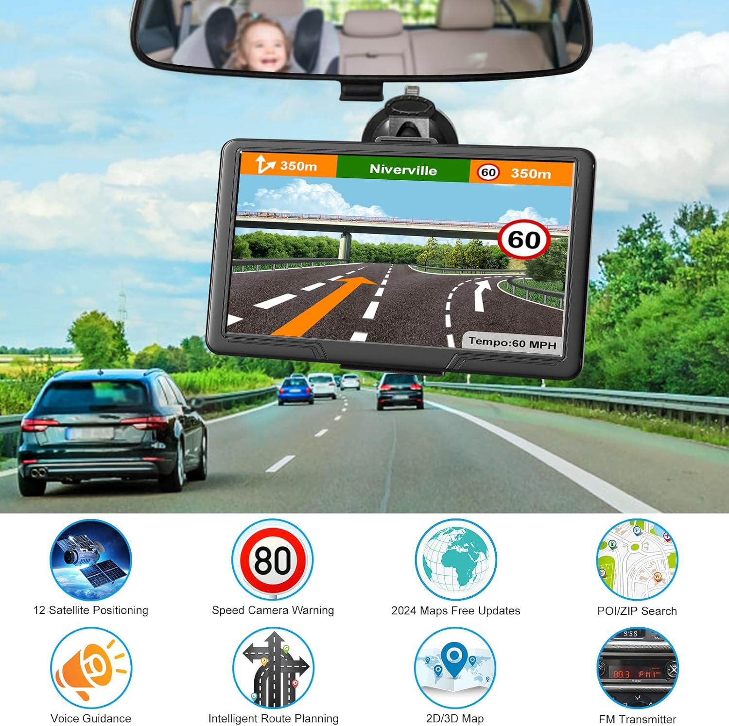 Reliable Car GPS: Car GPS with helpful speed warnings, radar and traffic light notifications save you money on fines. You'll never miss a turn or make a risky lane change again with Lane Assist. The 44-language navigation system with clear and easy-to-understand voice guidance in both male and female is your reliable travel companion. Connect the navigator to your car audio system via FM for louder voice instructions.