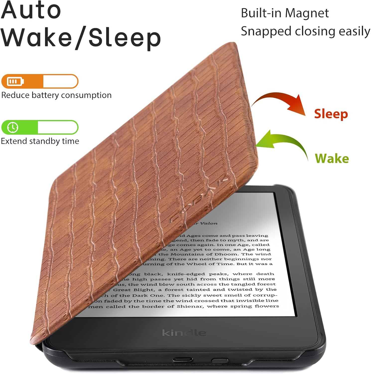 Auto Wake and Sleep: With the intelligent sensor built, its electronic reader Kindle will wake up or sleep without problems. Magnetic closure: Magnetic design helps Kindle's deck safely, providing 360 degree protection for your device