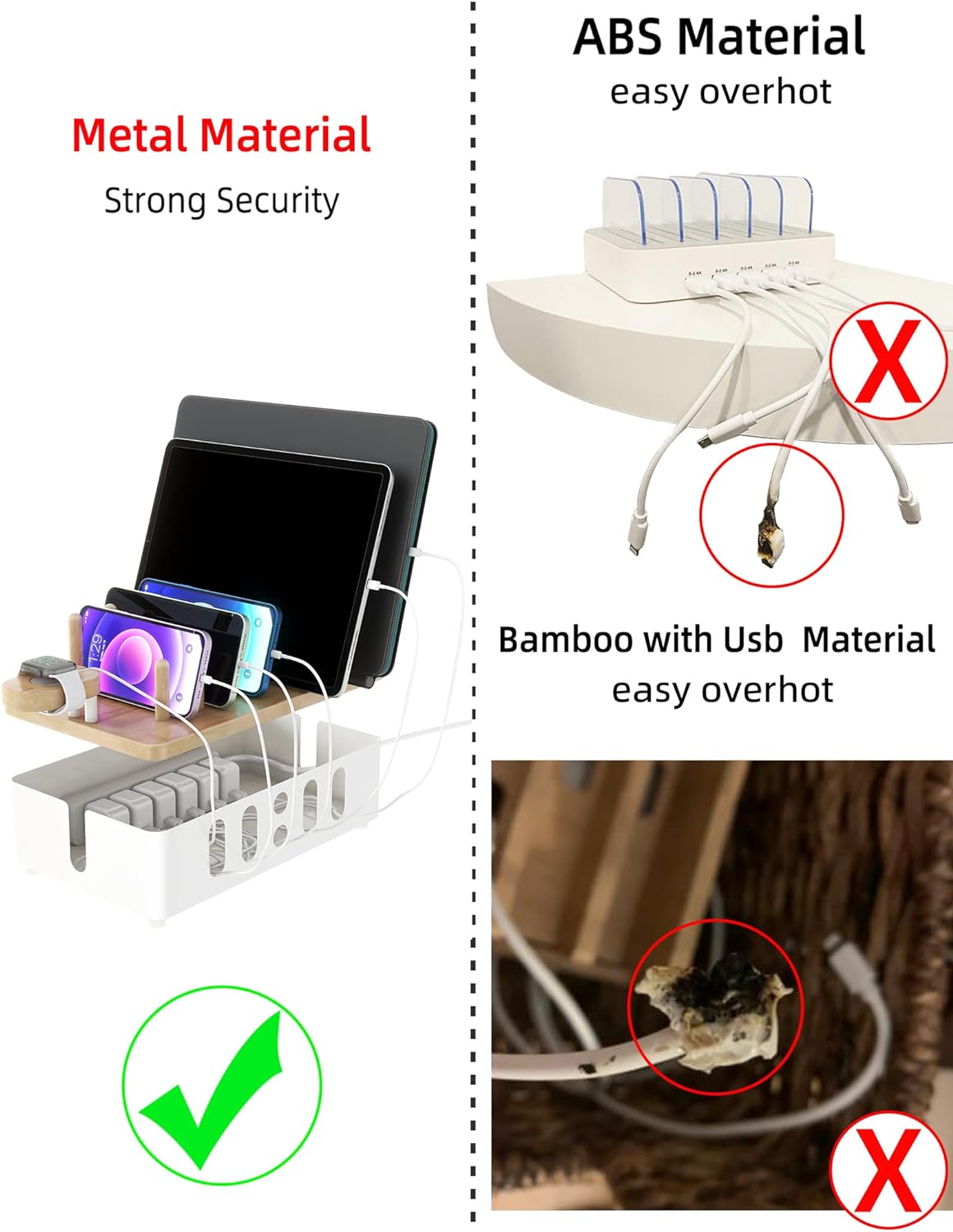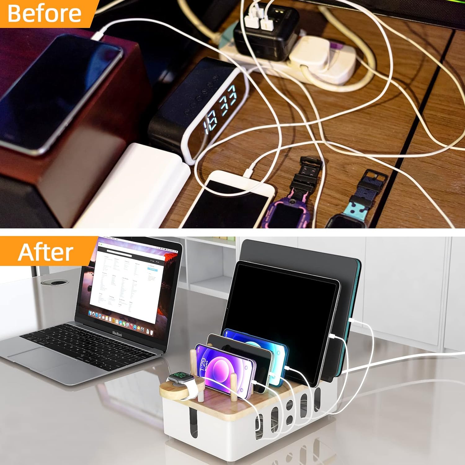 ✔【Features: Sturdy and Strong】– High-quality matte metal and natural wood have a more advanced sense. The charging station organizer has a non-slip design on the bottom and is equipped with non-slip pads to prevent slipping. Station to all surfaces, keep them tidy and save more space.