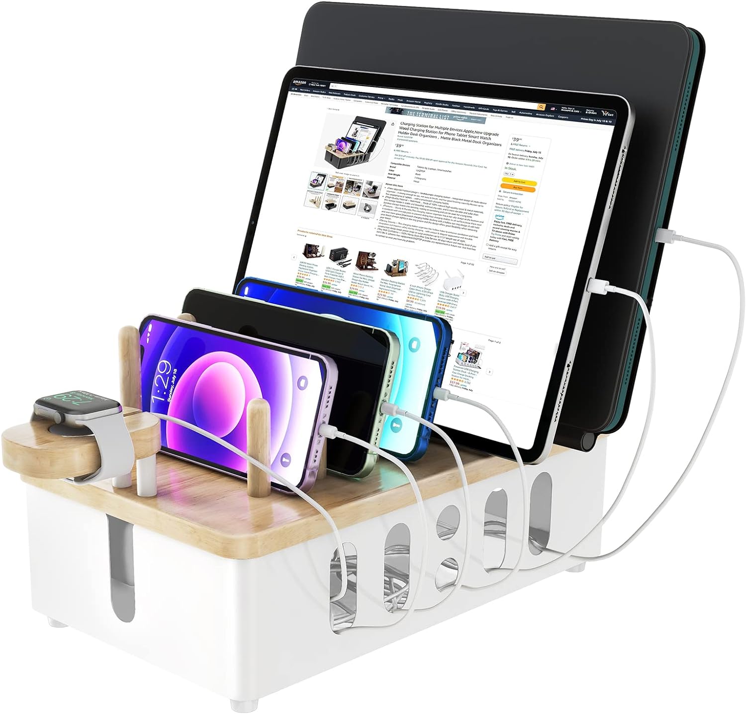 Charging station for multiple Apple devices, new wooden upgrade…