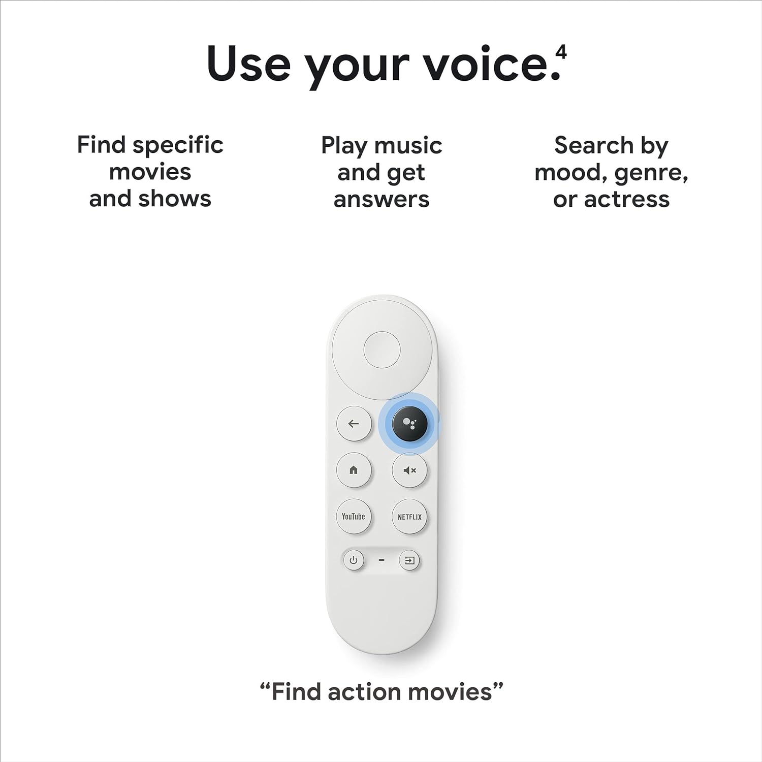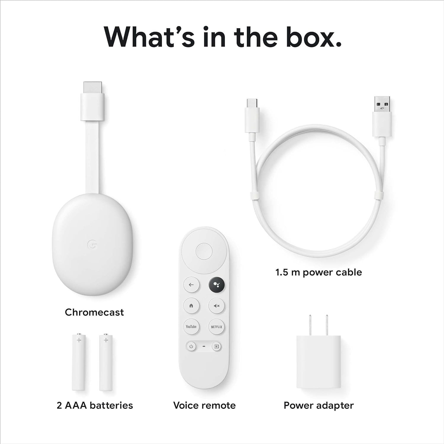 Chromecast with Google TV (HD) gives you the entertainment you love, including live TV[2]in up to 1080p HDR.[1,3] Get personal recommendations based on your subscriptions and streaming history, all in one place. Easily access your watchlist and library with custom profiles, or create a child profile to find content for the whole family. No more jumping between apps to decide what to watch. And use the remote control to search for movies and shows with your voice.[4] LEGAL (NEW) [1]Chromecast with Google TV requires a TV with an HDMI port, a Wi-Fi network, a Google account, a nearby power outlet, and a compatible mobile device. Minimum operating system requirements are available at g.co/cast/req. [2]Subscription services may be required. Content and services are not available in all countries or regions and are subject to change. [3]Viewing HD content also requires an HD-compatible TV and a reliable broadband Internet connection. [4]Google Assistant may be required for full functionality. [5]Some features, including mobile notifications, remote control, video streaming, and video recording, require working Internet and Wi-Fi. [6]Requires compatible smart devices. [7]Requires the Google Home app to set up the device. Speakers and screens sold separately. [8]Viewing content in 4K also requires a 4K-capable TV and a reliable broadband Internet connection. Viewing HD content also requires an HD-compatible TV and a reliable broadband Internet connection. [9]This does not include accessories, including the Chromecast voice remote, power cable, power adapter, and batteries. The weight of plastic parts does not include plastics of printed circuit boards, labels, cables, connectors, electronic components and modules, optical components, electrostatic discharge (ESD) components, electromagnetic interference (EMI) components, films, coatings and adhesives. [10]Requires the Google Home app to set up the device.