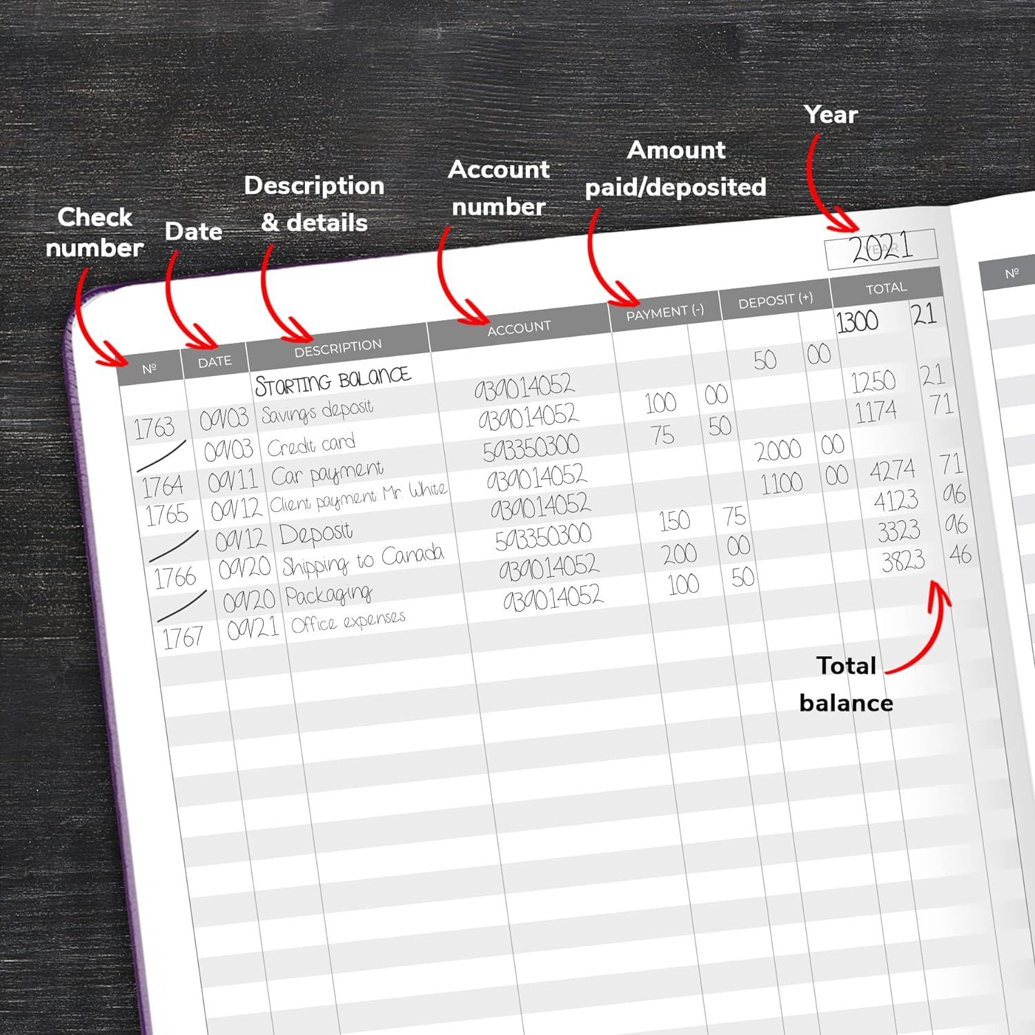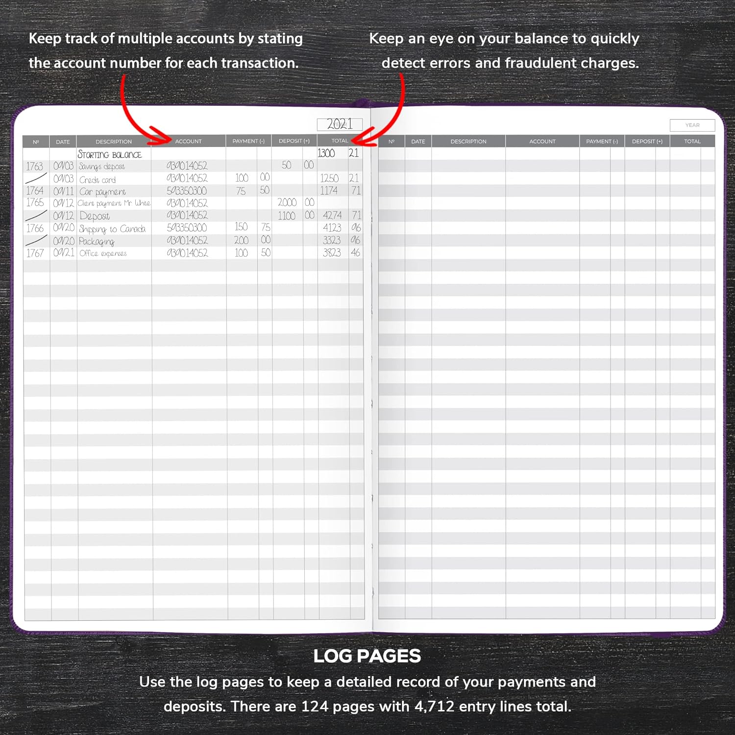 With a spacious format, perfect for even larger handwriting, and over 4,000 lines of entry, keep a neat and complete record of all your transactions.
