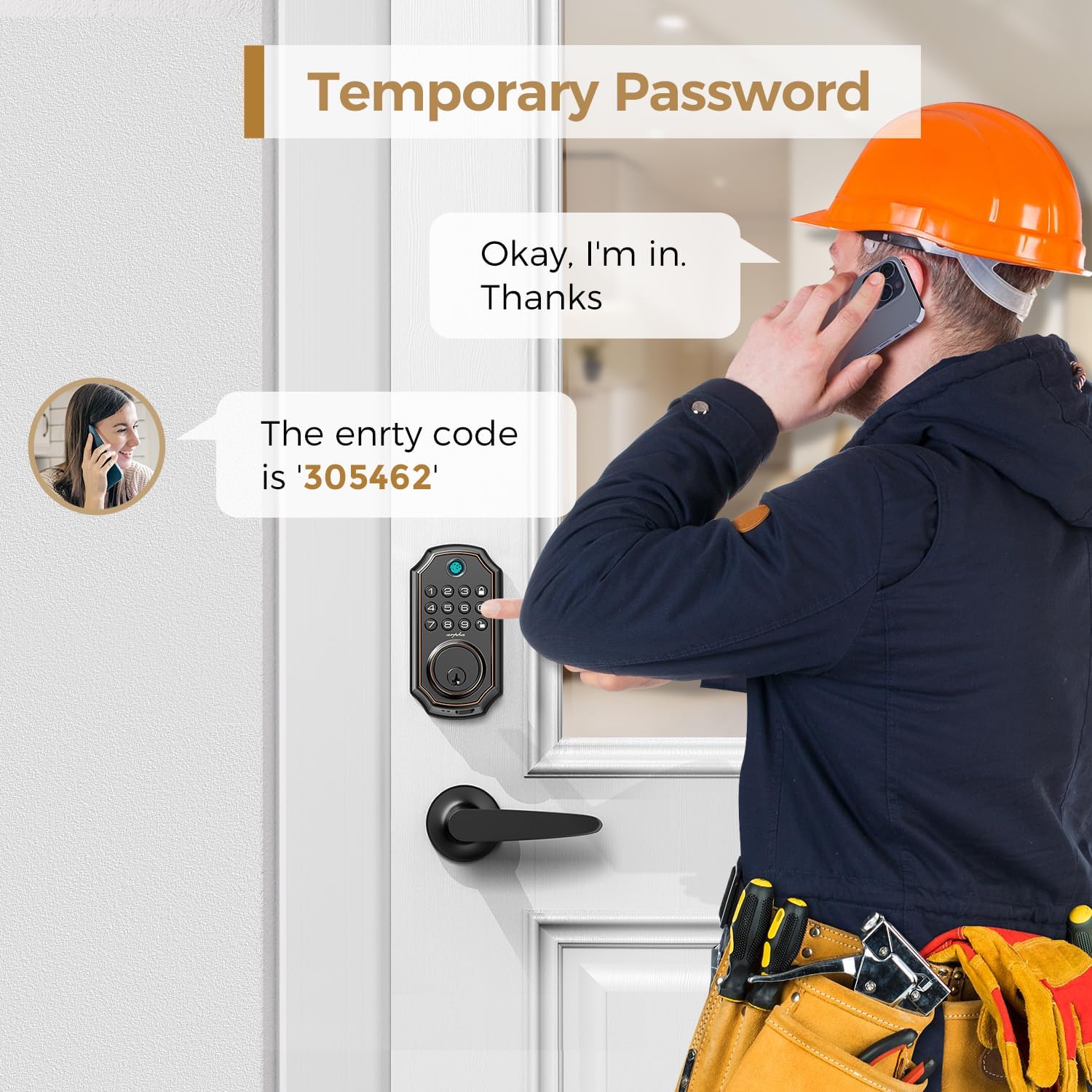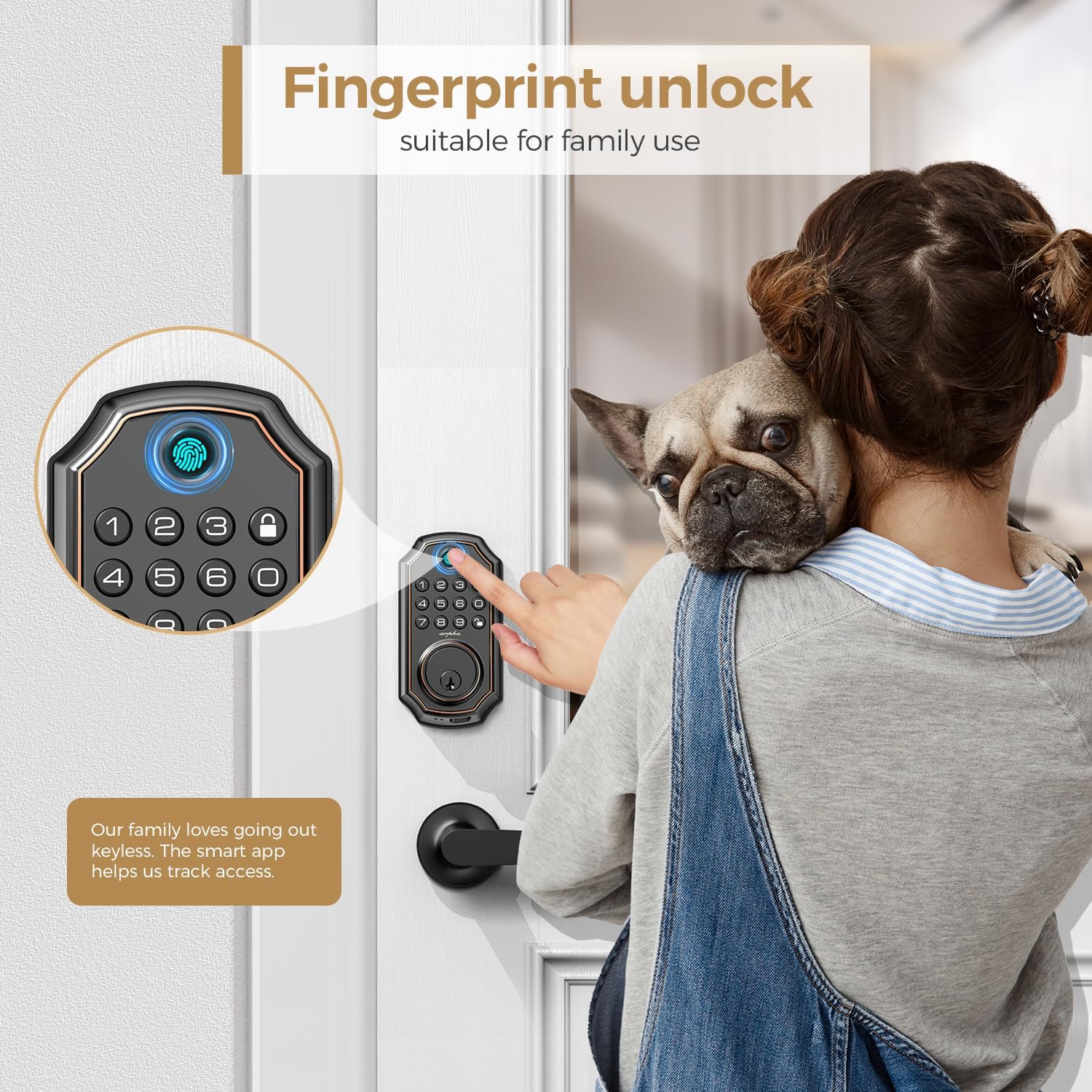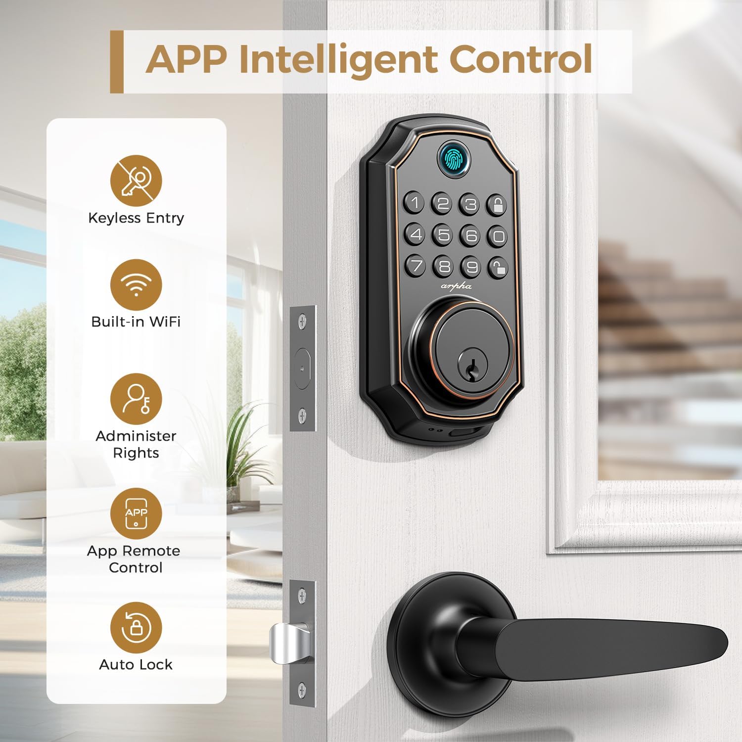 5 In 1 Keyless Entry Door Block: The Wi -Fi Arpha door lock could be unlocked through the application + fingerprint + password + EKEY + mechanical key. You can enter 50 digital footprints, generate more than 100 PLN codes, share keys and authorize administrators. Everything you need in 1 Safeand Secure Smart Lock.