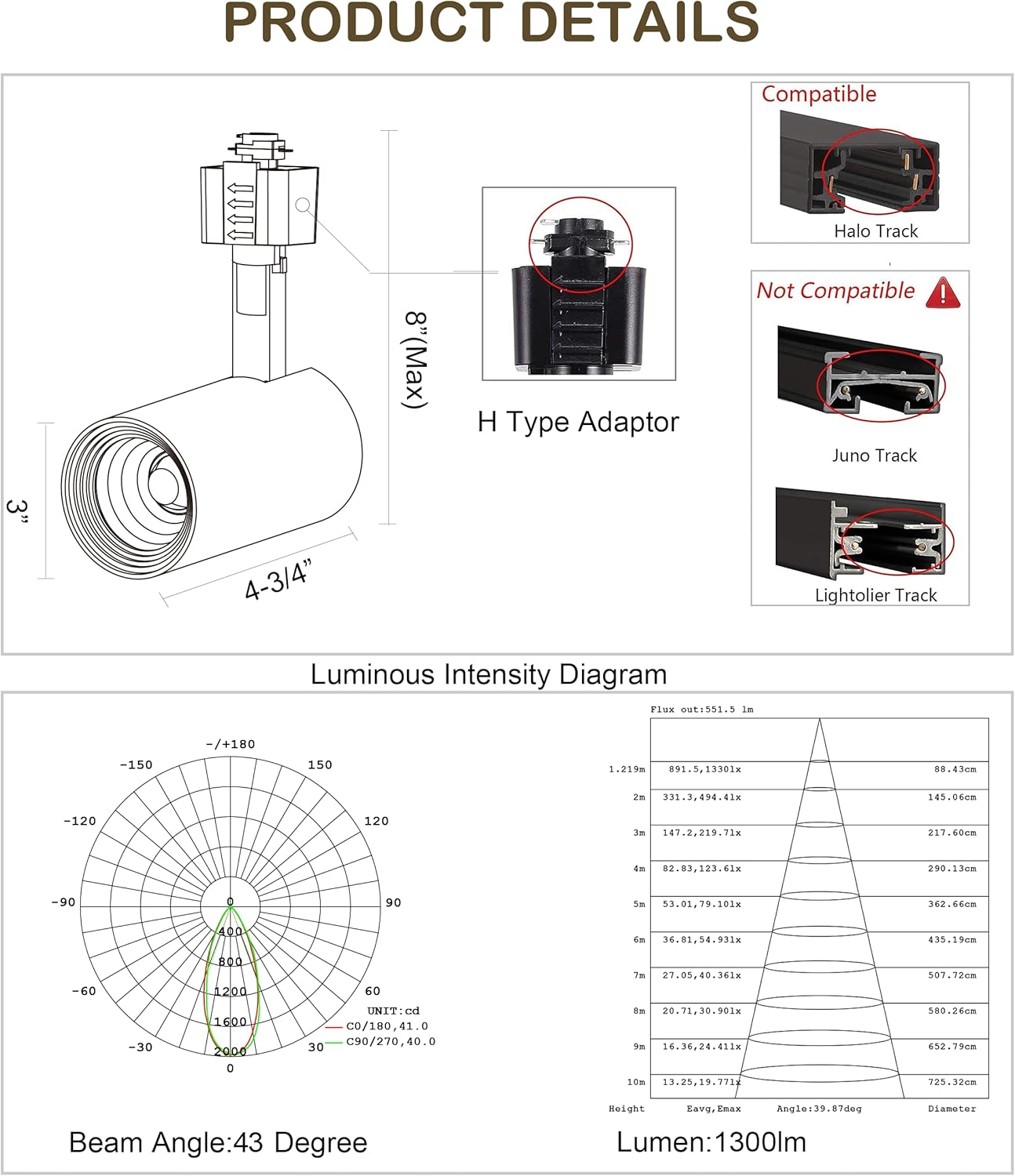 Track Light Series Add to Cart Add to Cart Add to Cart Add to Cart Add to Cart Add to Cart Add to Cart Customer Reviews 4.2 out of 5 stars 282 4.2 out of 5 stars 282 4.5 out of 5 stars 224 4.3 out of 5 stars 75 4.2 out of 5 stars 282 4.5 out of 5 stars 309 4.5 out of 5 stars 309 Price $100.99$100.99 $89.99$89.99 $100.99$100.99 $100.99$100.99 $76.75$76.75 $70.69$70.69$70.69$70.69 Wattage 18W 18W 30W 30W 8W 8W 8W Lumens 1300LM 1300LM 2400LM 2400LM 750LM 600LM 600LM CRI 90+ 90+ 90+ 90+ 90+ 90+ 90+ Beam Angle 43° 43° 40° 40° 40° 40° 40° Suitable Application Wet Location Wet Location Wet Location Wet Location Wet Location Wet Location Wet Location
