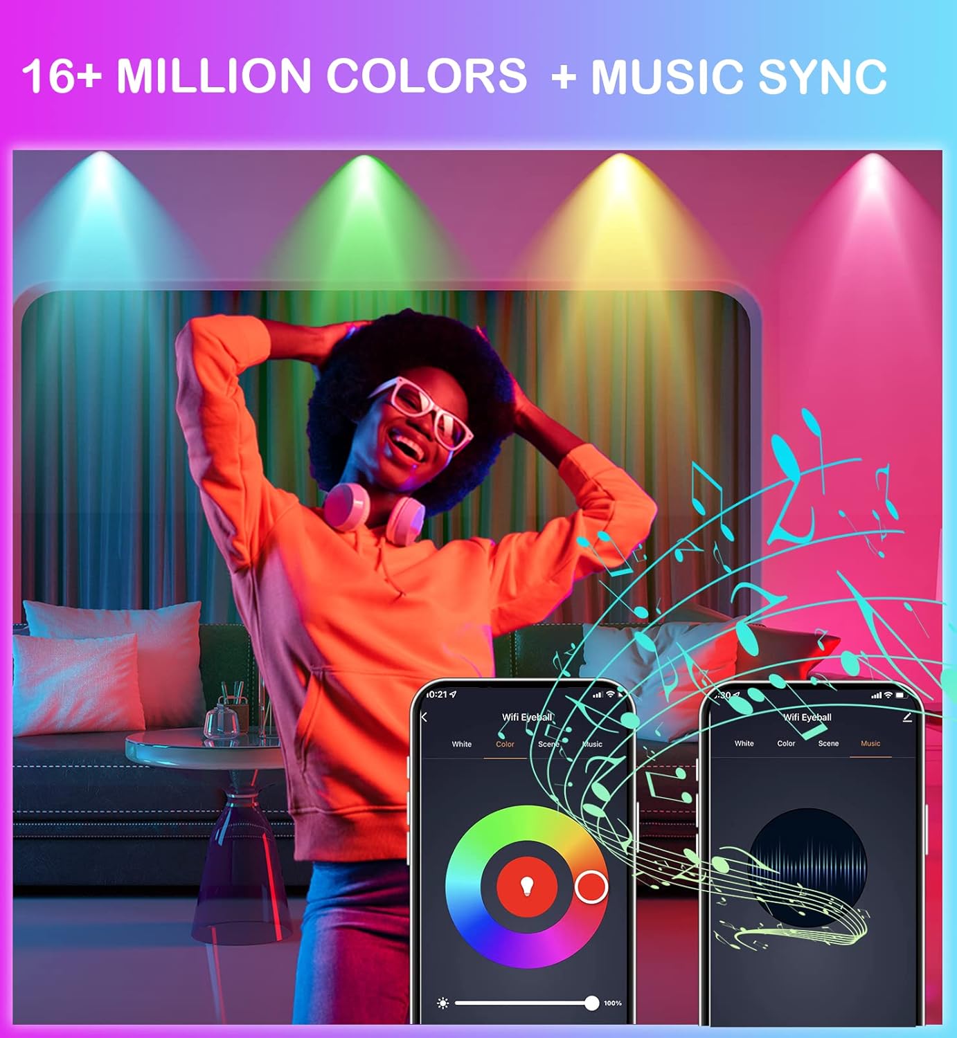 【Music Sync +8 Scenarios】With a wide range of CCT and RGB colors, the light is available in 8 scenarios, meeting your different lighting needs, reading, working, sleeping or dancing, etc. You can also sync it with music and lighting. I would follow the change of musical rhythms, having fun with family and friends now!