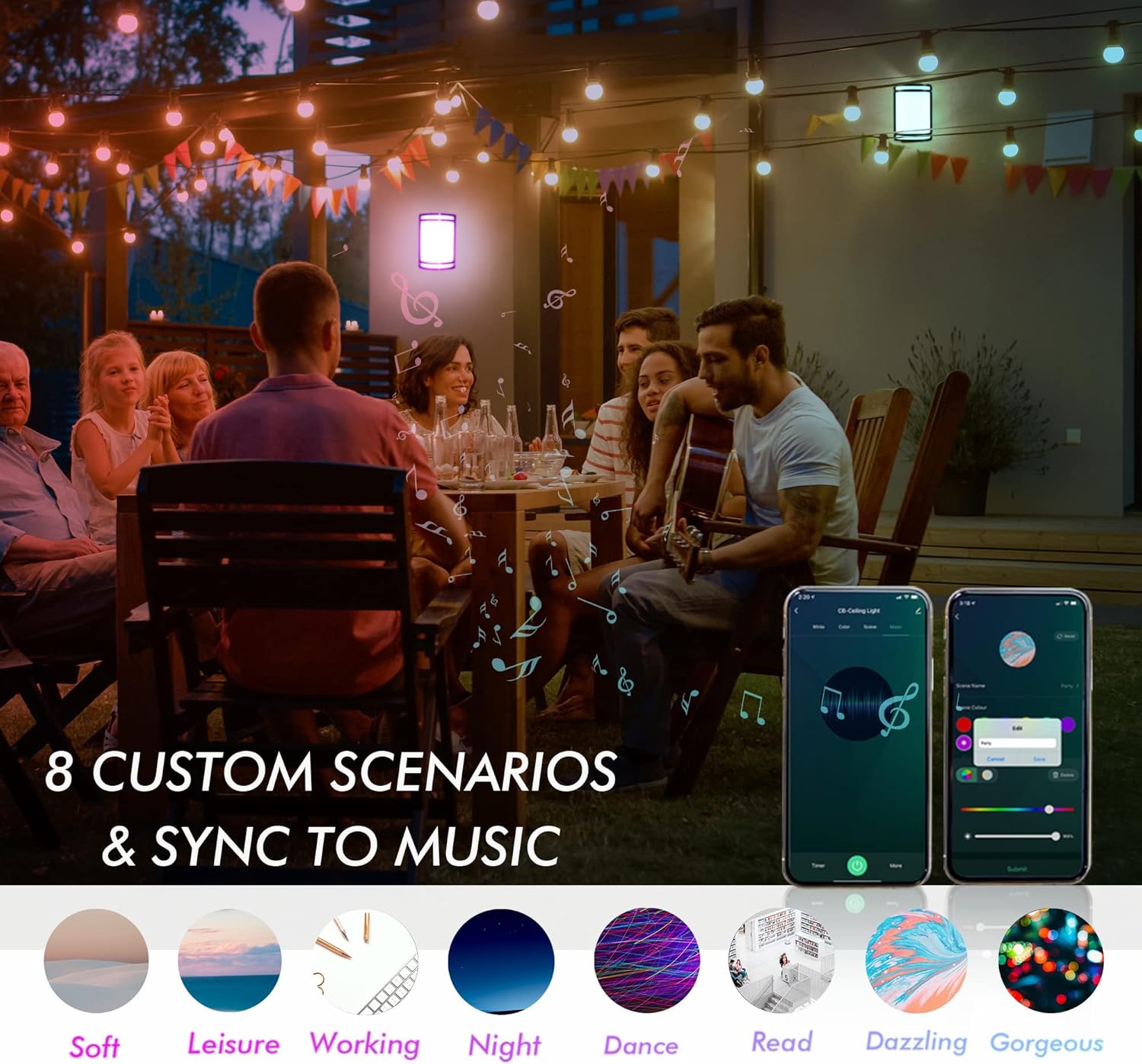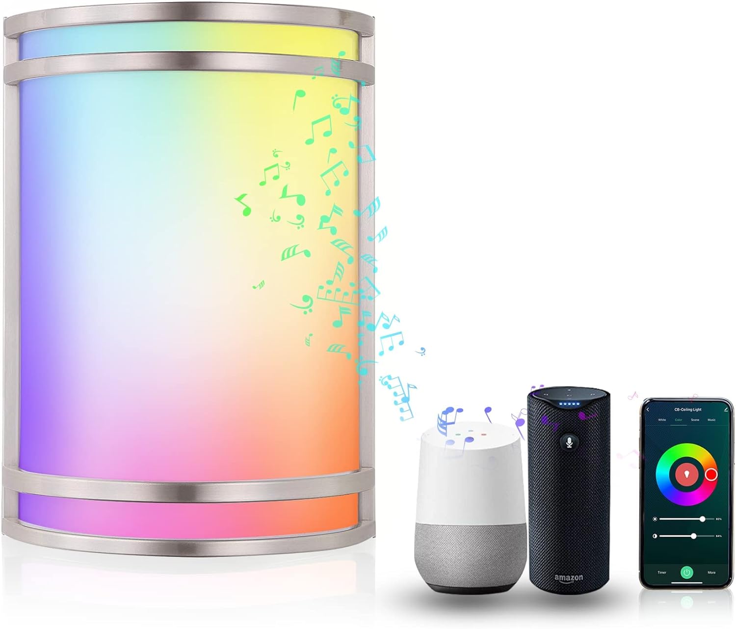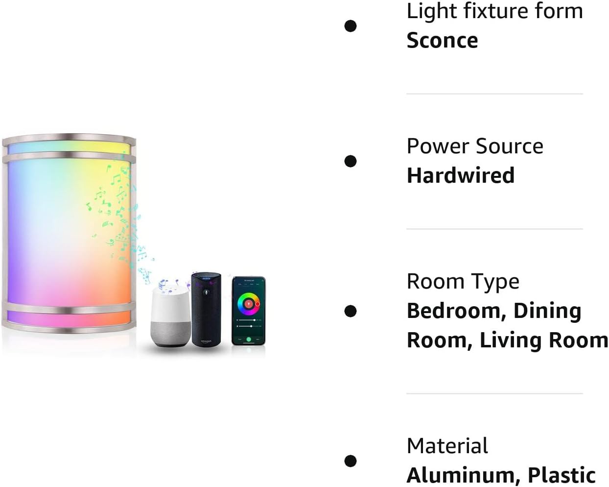 8 Scenarios & Music Sync: RGB LED wall light has over 16 million colors, smooth dimming from 1% to 100% (only support APP control and voice control), color temperature from 2700K to 6500K etc. The scenarios are editable, which means it will suit your different lighting needs: reading, working, movies, dancing or music. The lighting color will change with the music rhythm, microphone or your clapping hands.