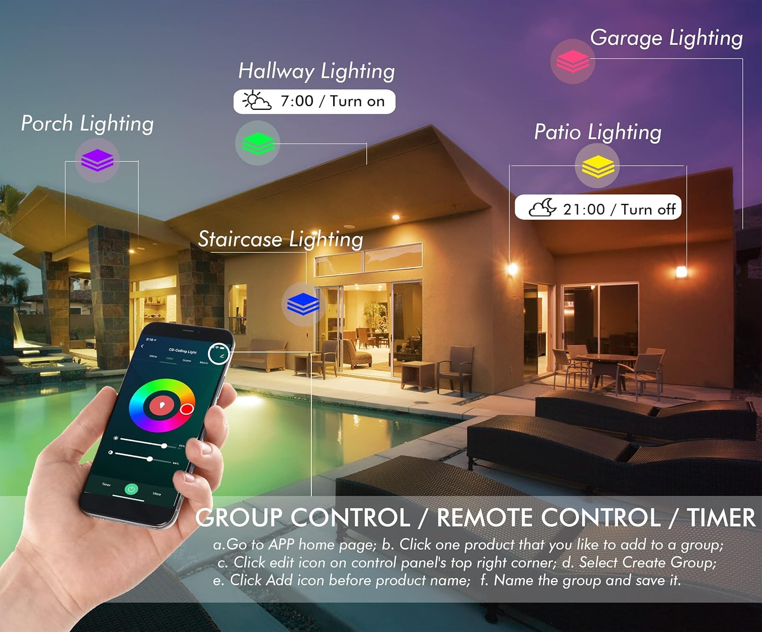 Smart App Control: Just a few steps to enjoy smart control after downloading CloudyBay Smart Life App and linking with these smart lights, including precise and soft color, dimming and color temperature, etc, and using it as a timer to set your lighting schedule. If you forgot to turn off the lights before leaving your house, don't worry, the remote control will help you!