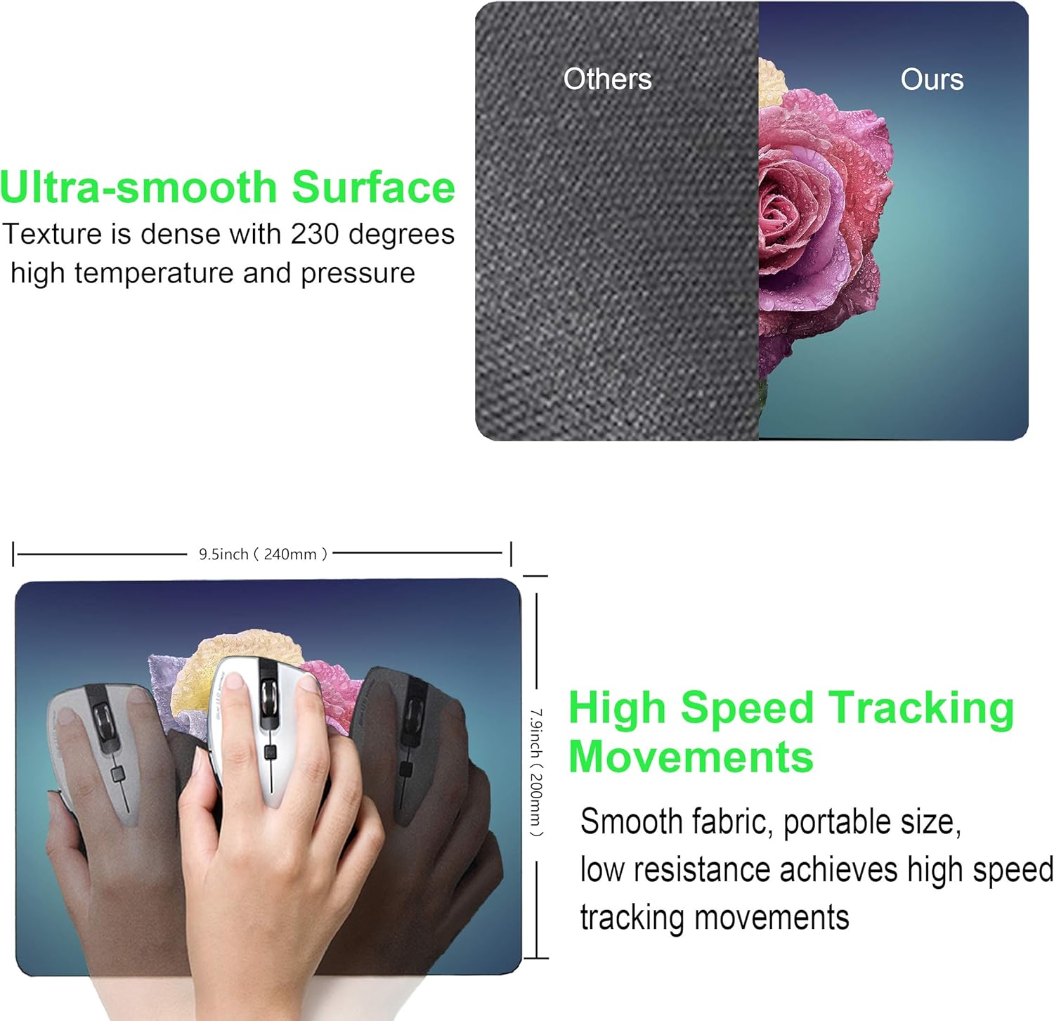 【Ultra-smooth surface】The texture is denser with 230°F and high pressure treatment. The mouse can be moved quickly and accurately positioned on the slippery surface. Ideal for your laptop, computer and PC.