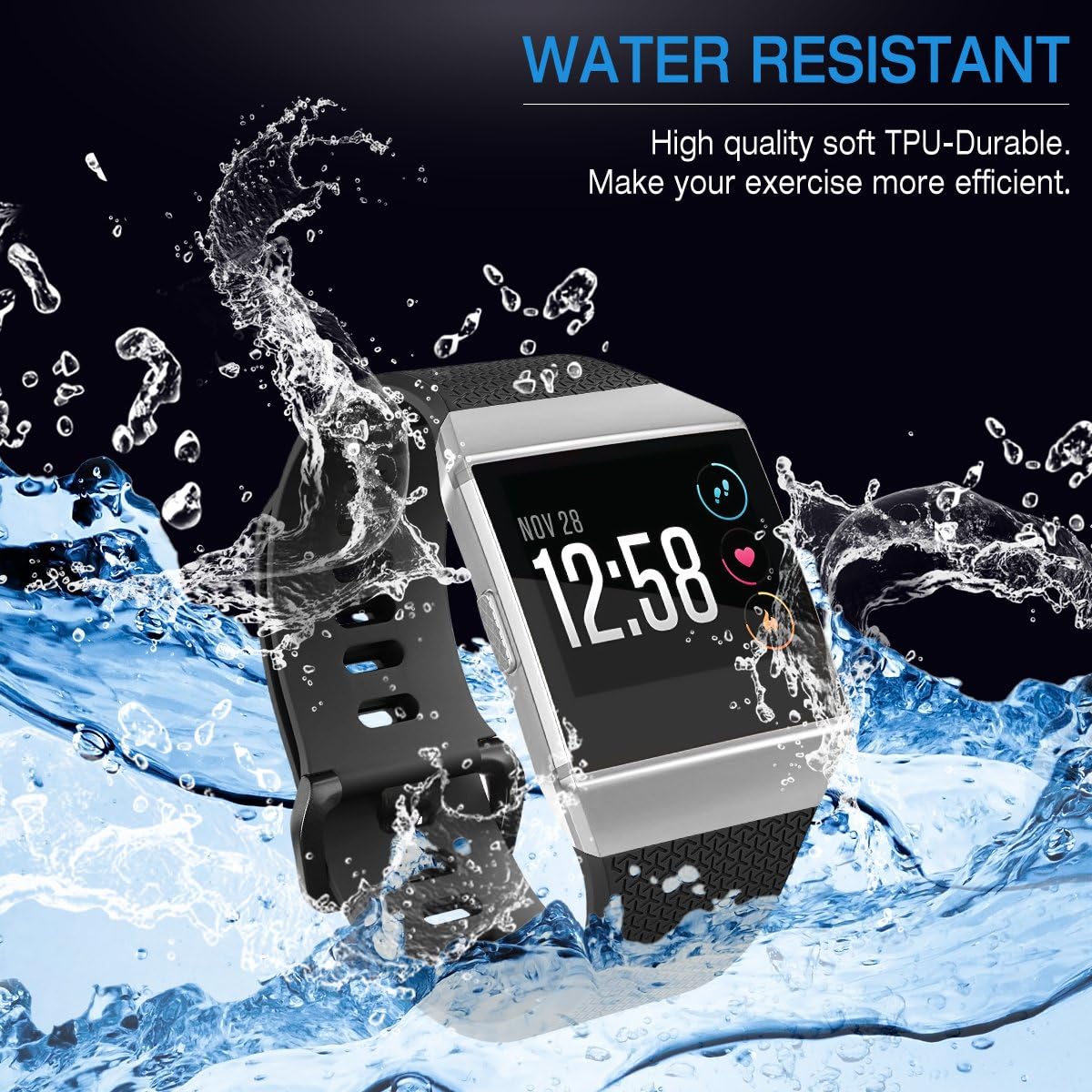 AIUNIT Colorful design for your precious Ionic fitness smart watch. Small size fits 4.3″ – 6.1″ (110mm – 155mm) wrist. Large size fits 5.3″ – 7.3″ (135mm – 185mm) wrist.