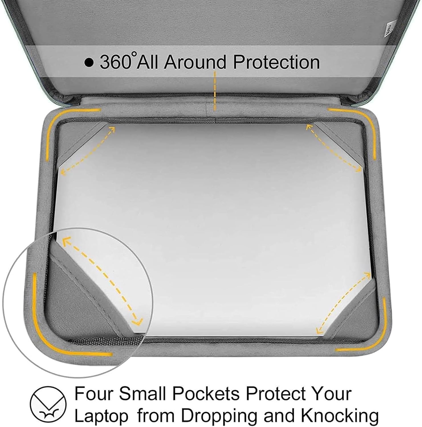 360 degrees around the protective inner edge protect your laptop from any accidental fall.